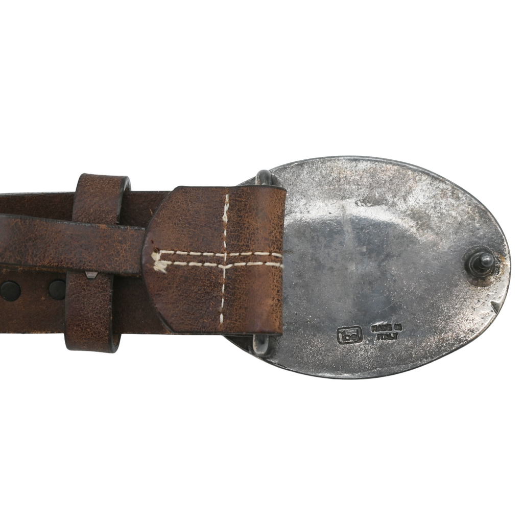 Gently used, with some tarnishing & wear at the buckle. Some creasing & wear on the leather belt. Some scratches on the hardware.