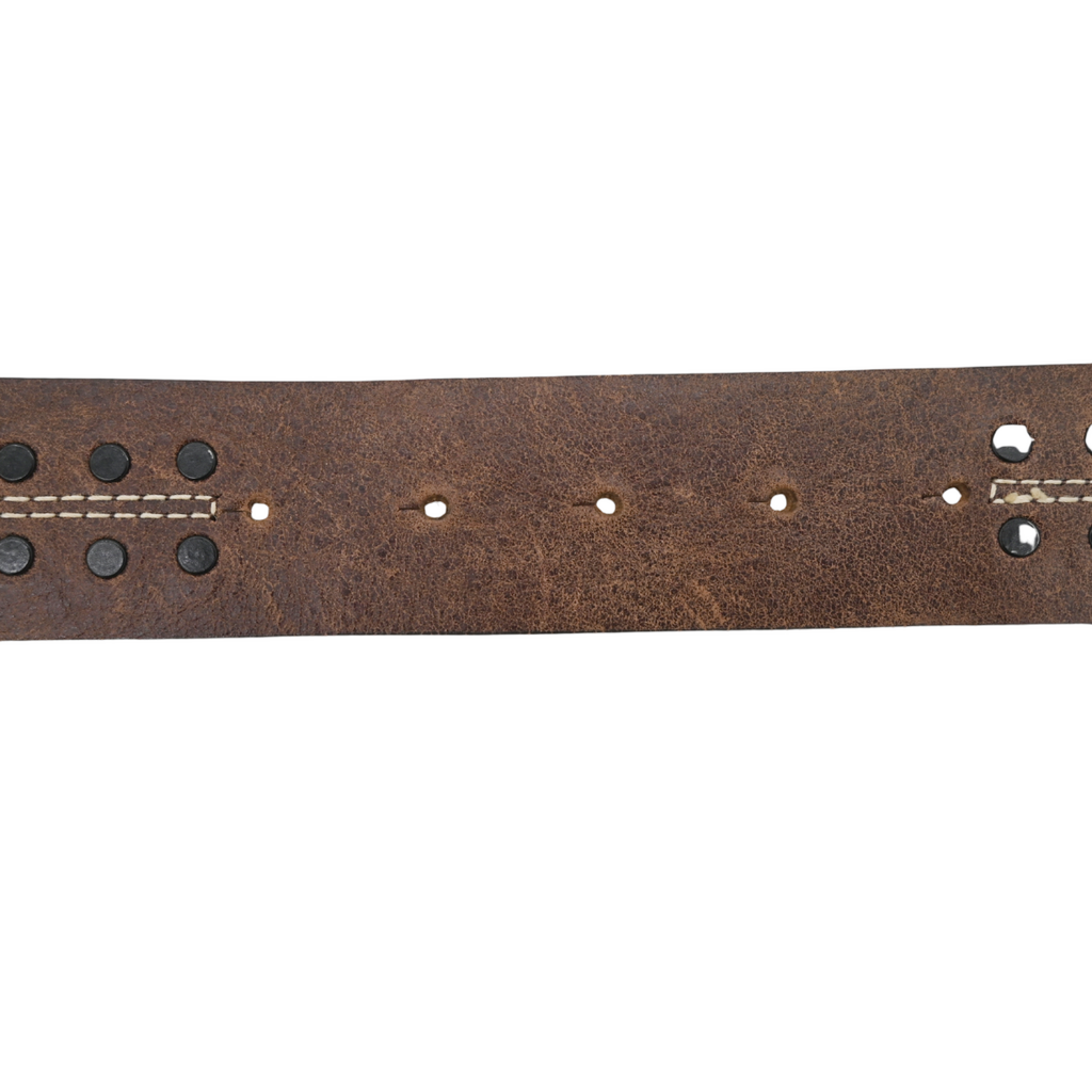 STREETS AHEAD | Wooden Buckle Studded Leather Belt Size Medium