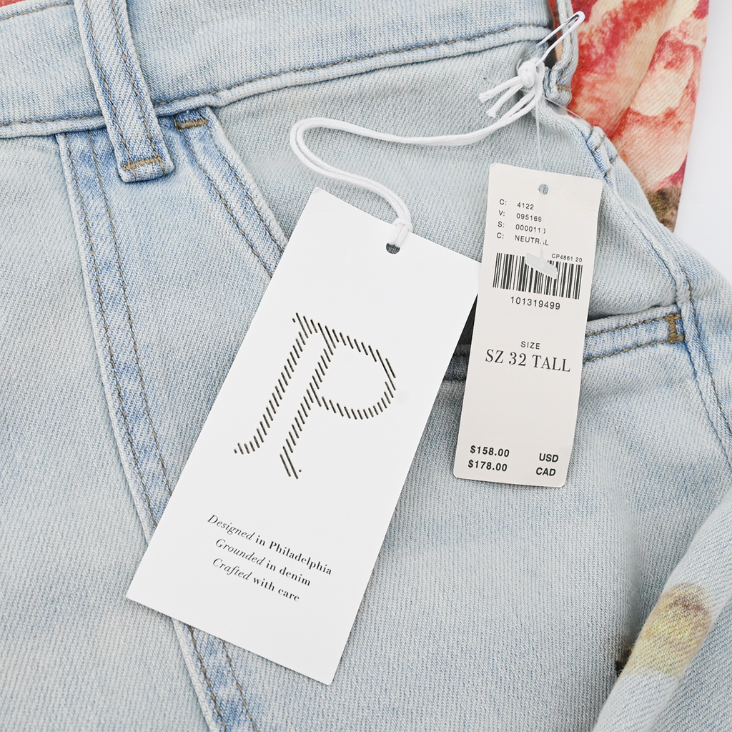 Good, with very light pilling at denim & faint dust stains at leg cuffs. Original tag included.