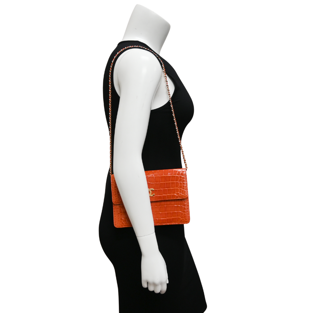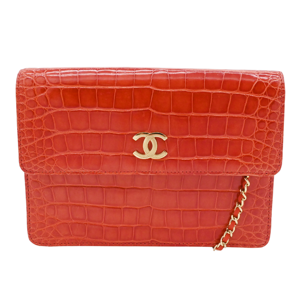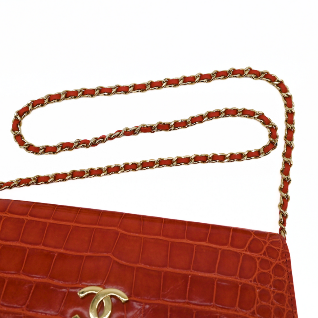 CHANEL | Red Alligator CC Leather Shoulder Bag