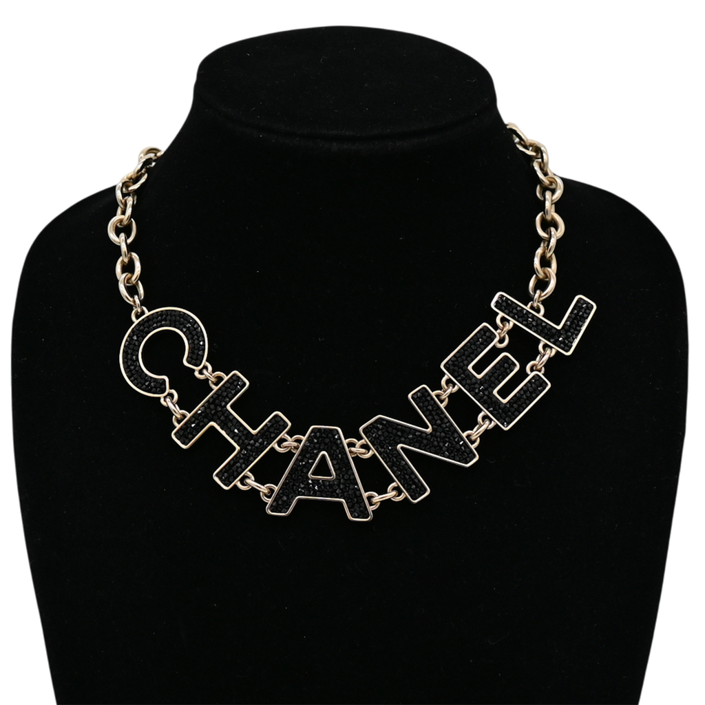 CHANEL | Black Crystal 'CHANEL' Embellished Necklace