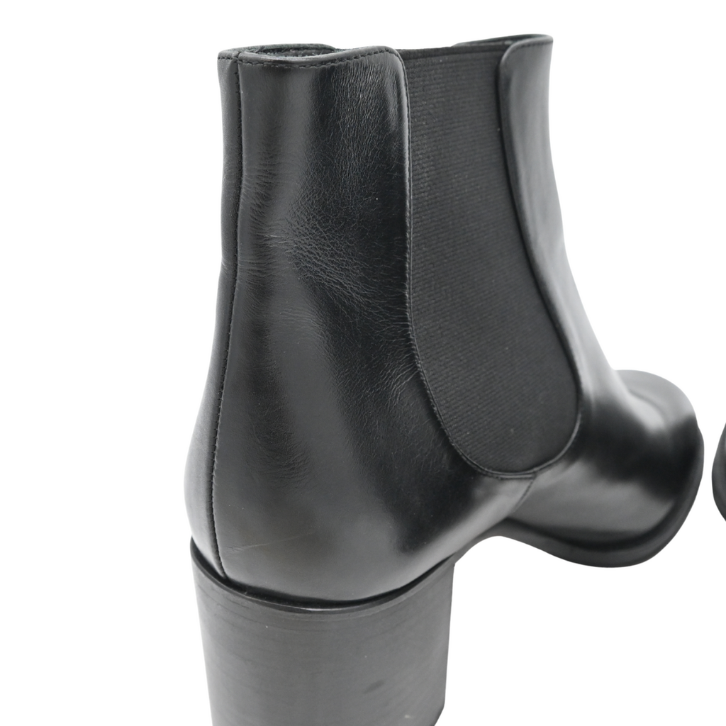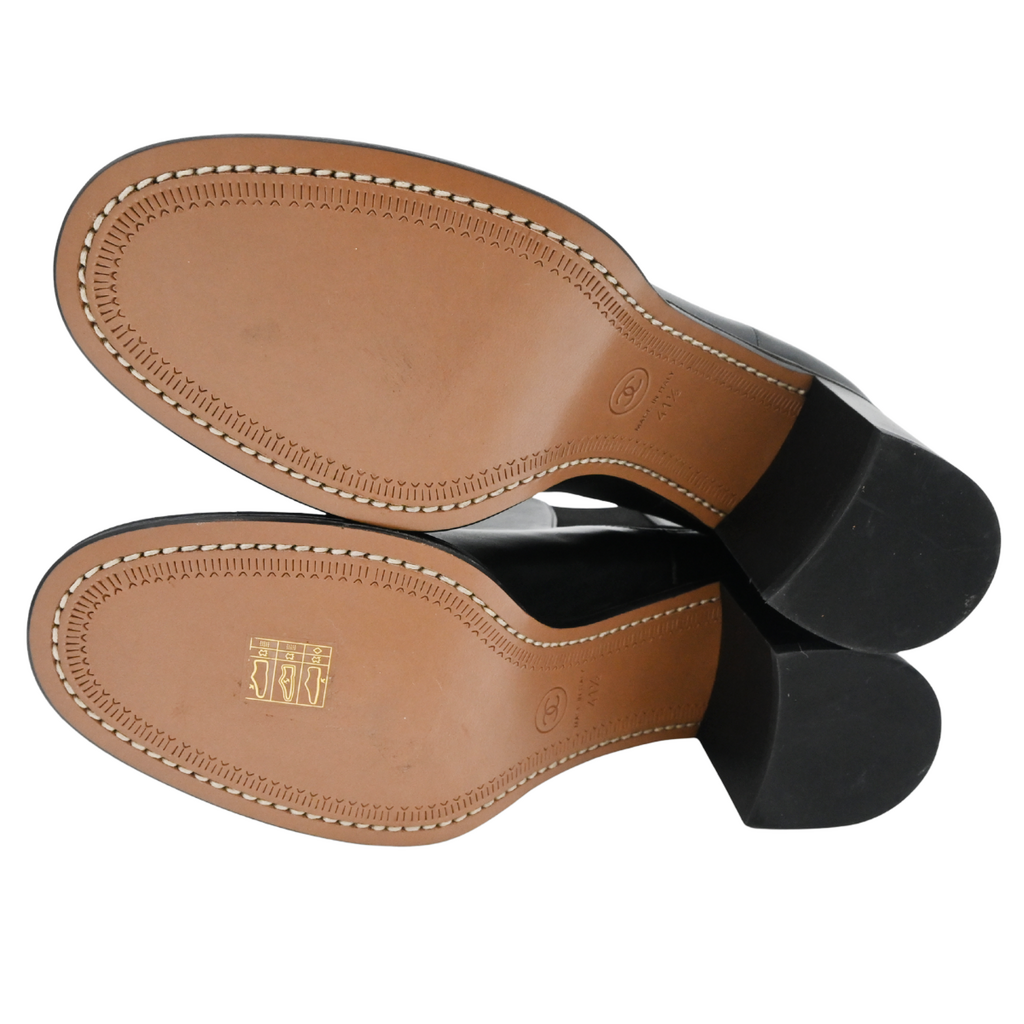 CHANEL | CC Black Leather Ankle Booties Size 41.5