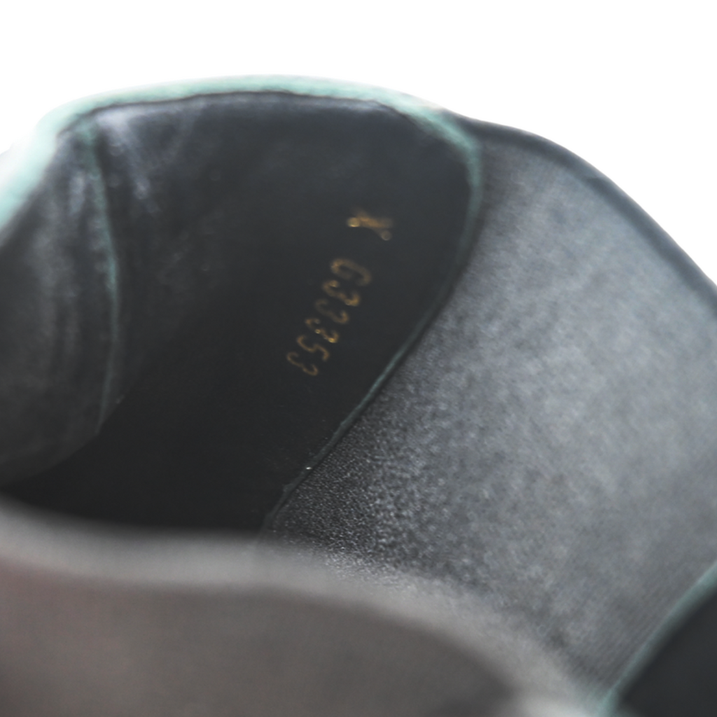 Gently used, with minor wear at the soles & insoles. Some creasing & scuff marks at the upper leather. Some residue & wear at the interior. Minor stains at the heels.
