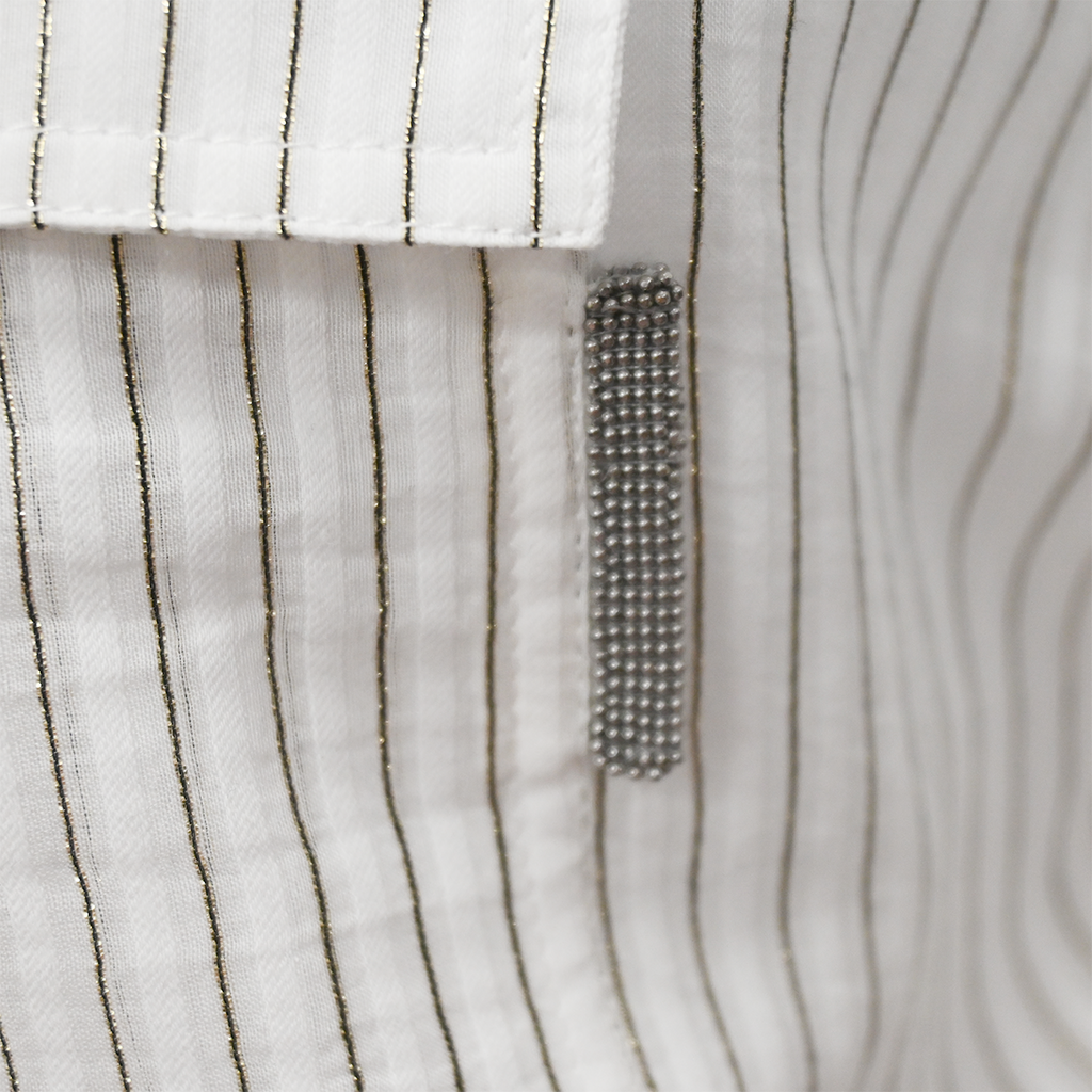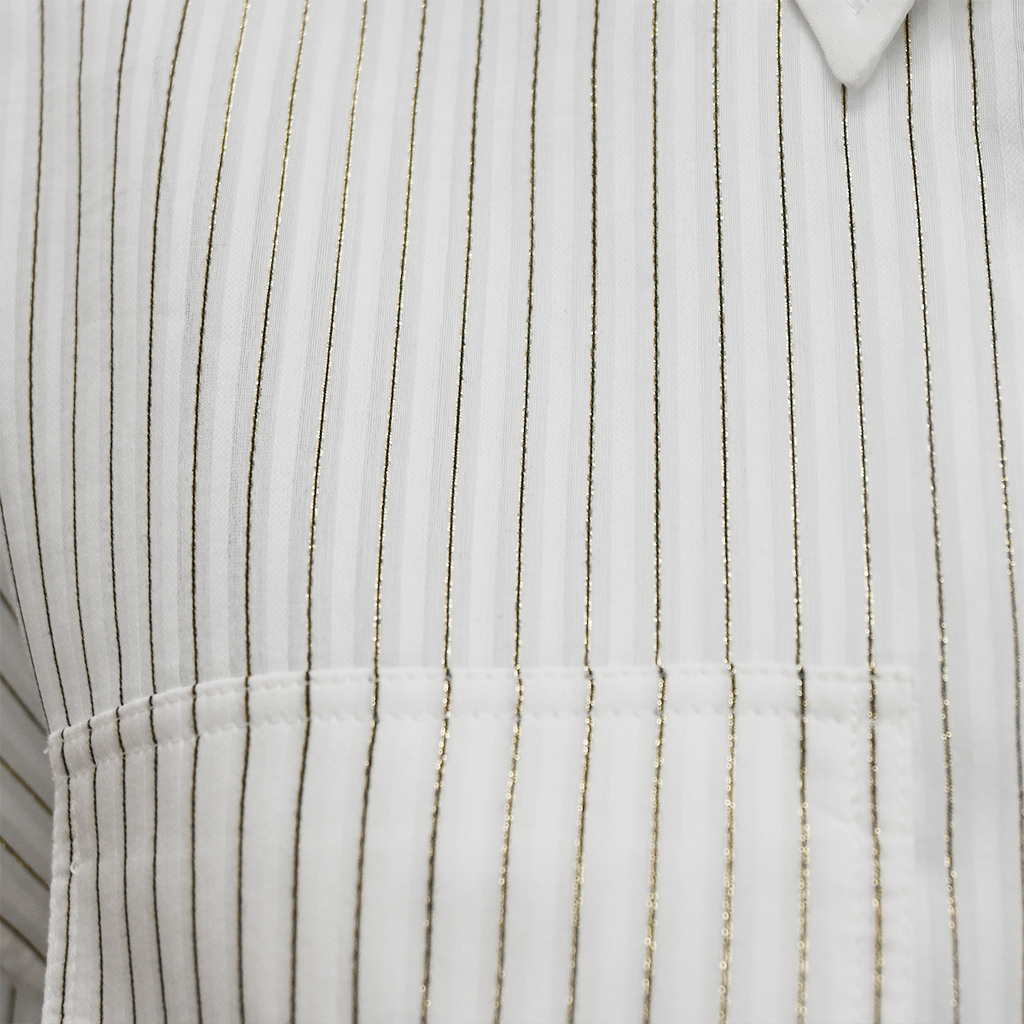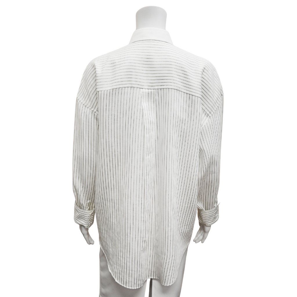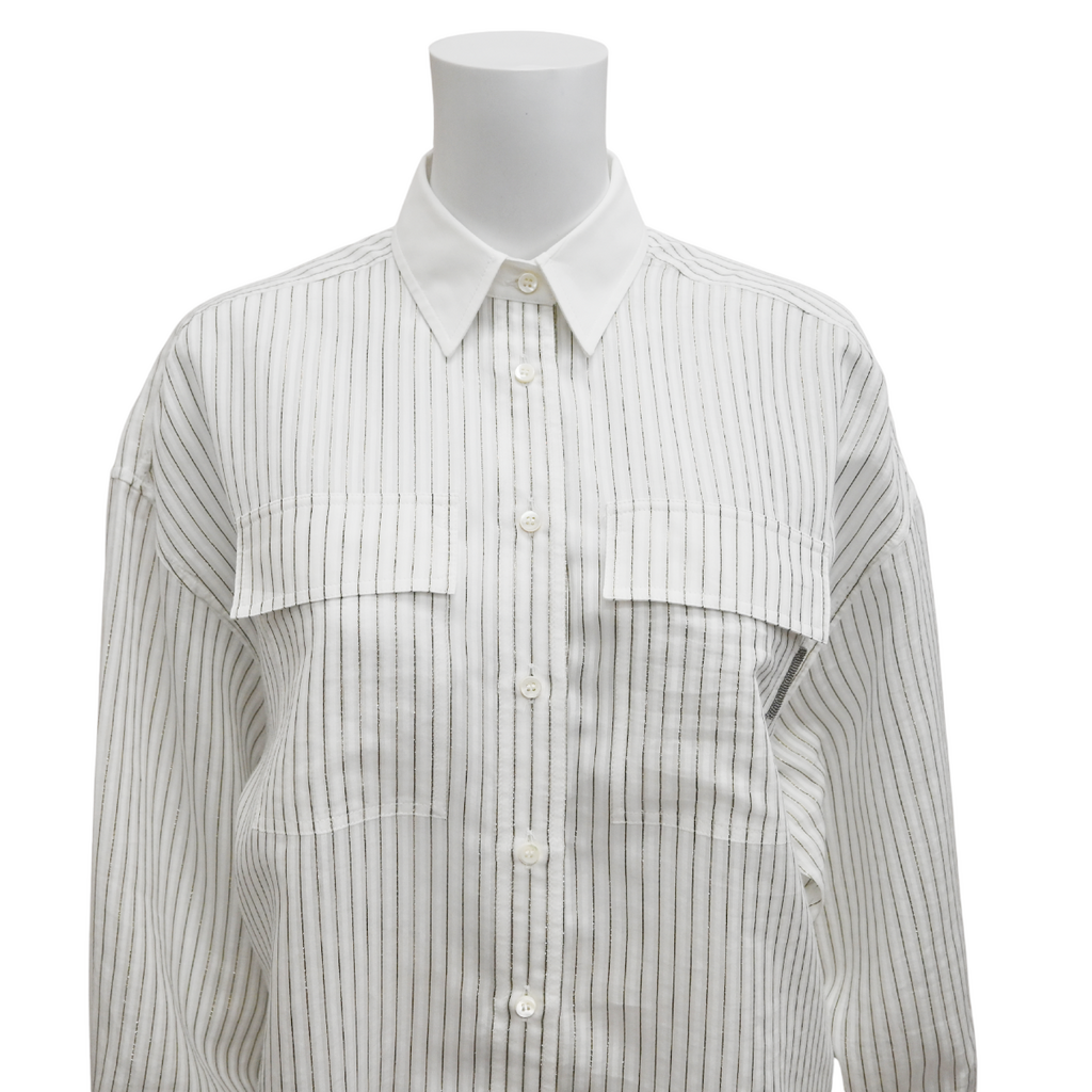 BRUNELLO CUCINELLI | Striped Metallic Sheer Button-Up Blouse Size Estimated L