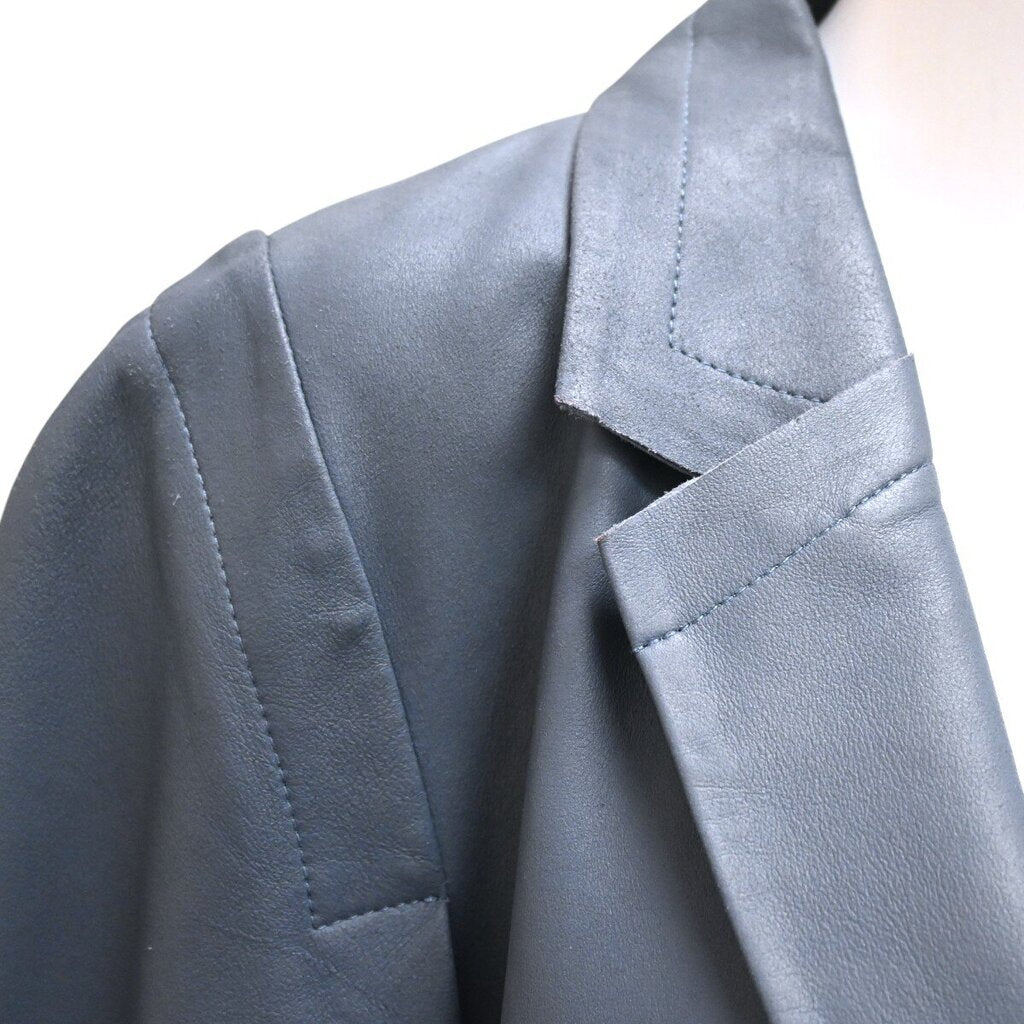 KOBI HALPERIN | Pippa Blue Iko Slate Leather Boxy Jacket Size XL