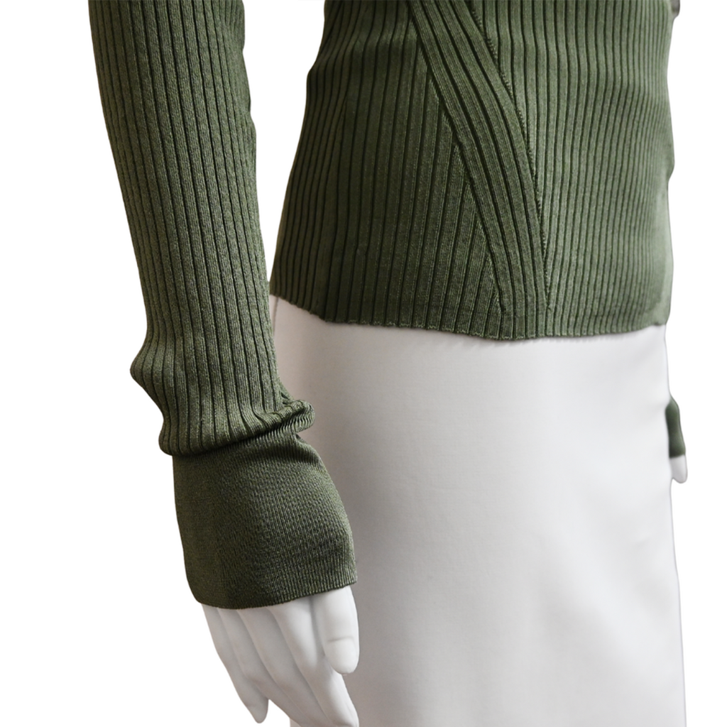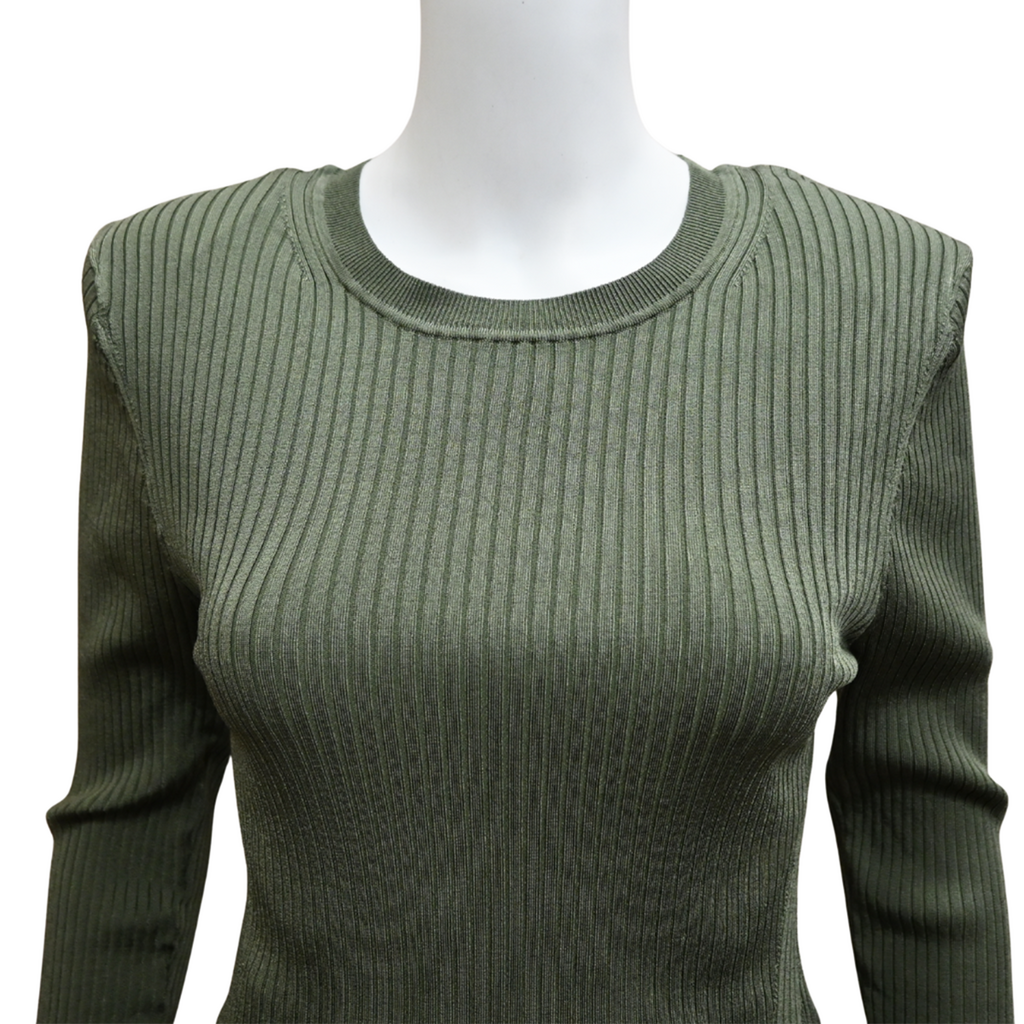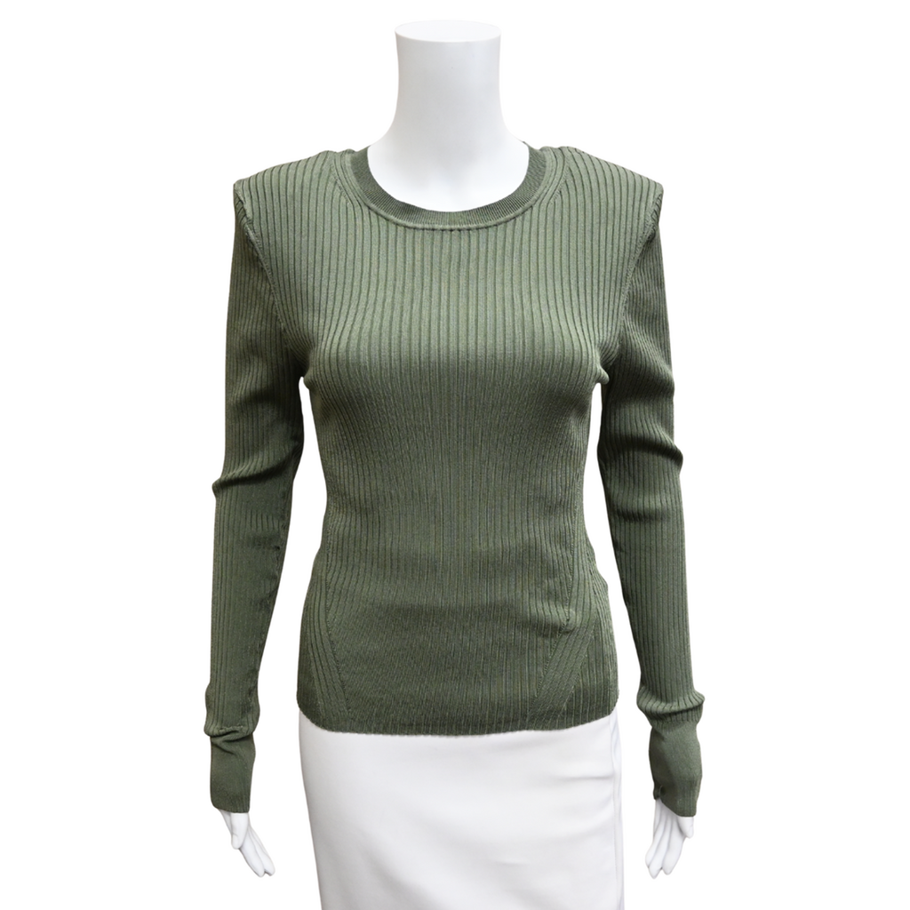 VERONICA BEARD | Acara Stone Army Green Ribbed Top Size L