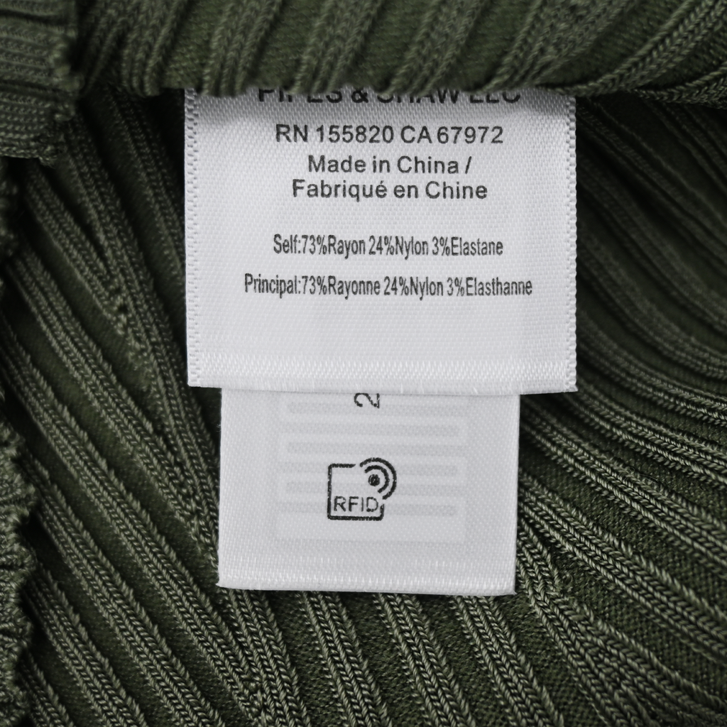 Green rayon-blend ribbed knit fabric shell
