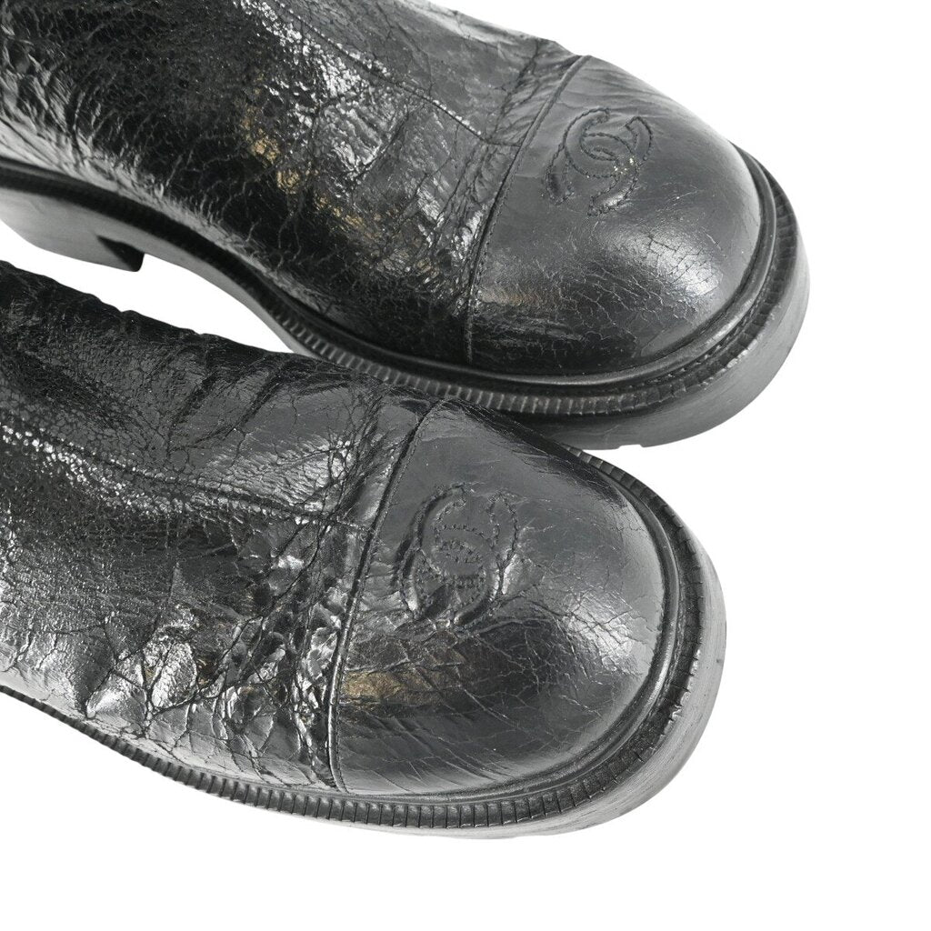 CHANEL | Crackled Leather Shearling-Trim CC Booties Size 40