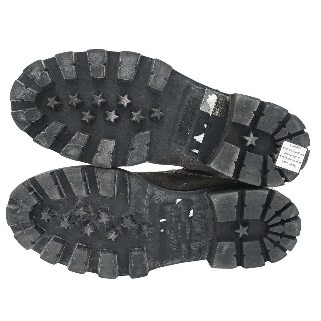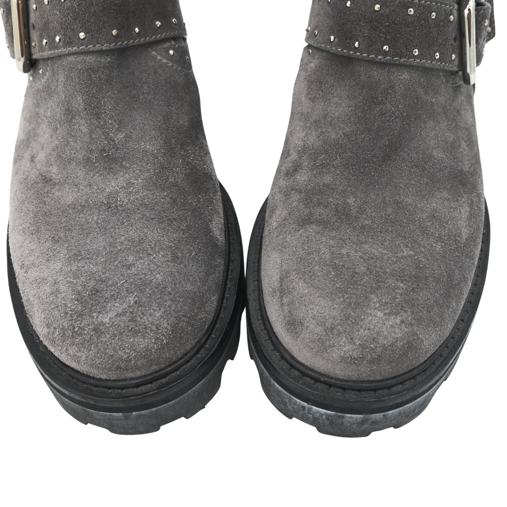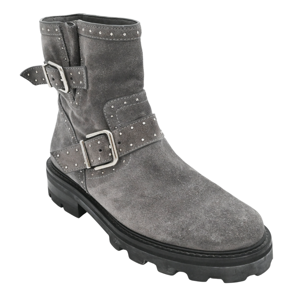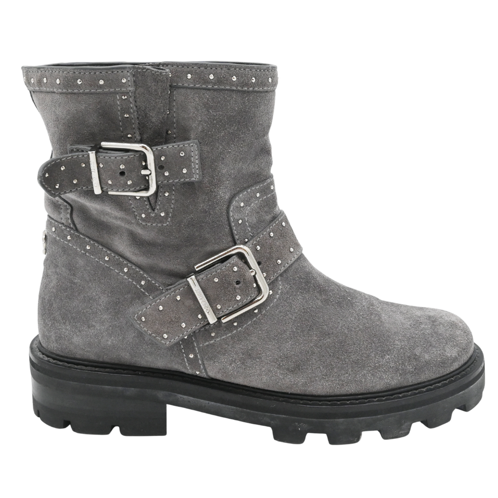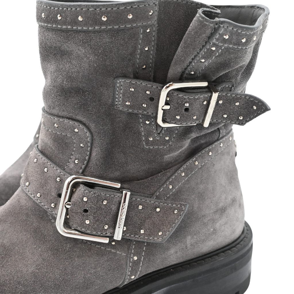 JIMMY CHOO | Gray Suede Studded Buckled Booties Size 38