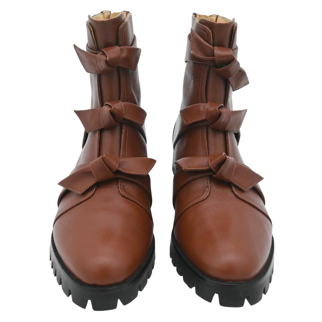 ALEXANDRE BIRMAN | Lolita Tan Bow Leather Booties Size 37.5