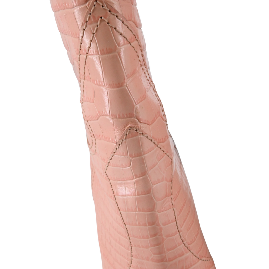 FENDI | Pink Embossed Leather Western Boots Size 41