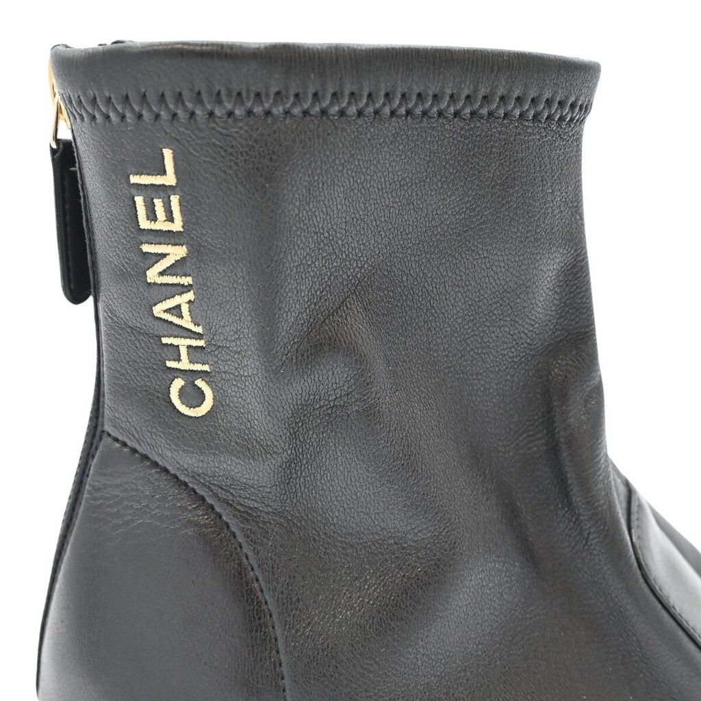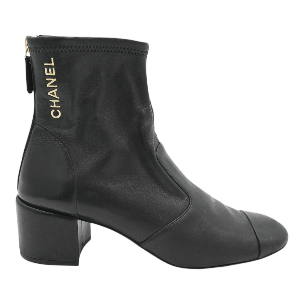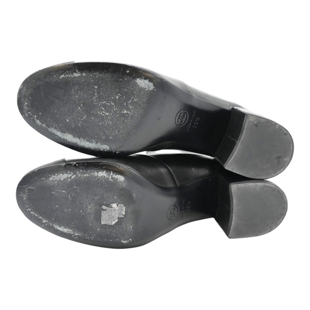 CHANEL | Black Leather Zip Booties Size 38.5