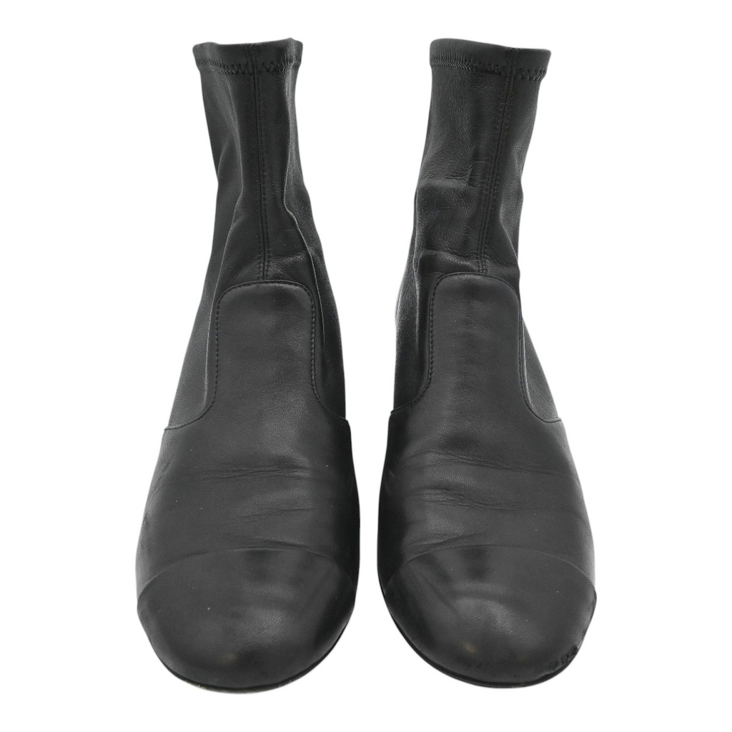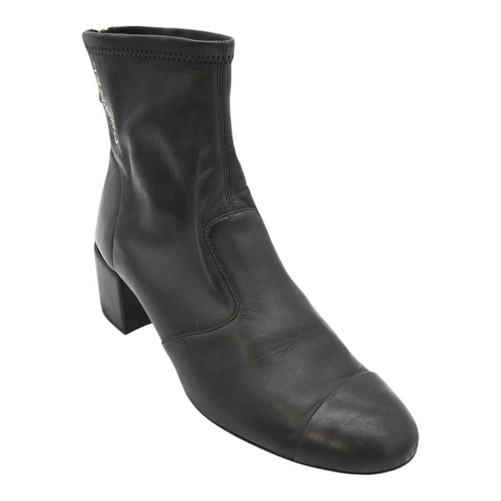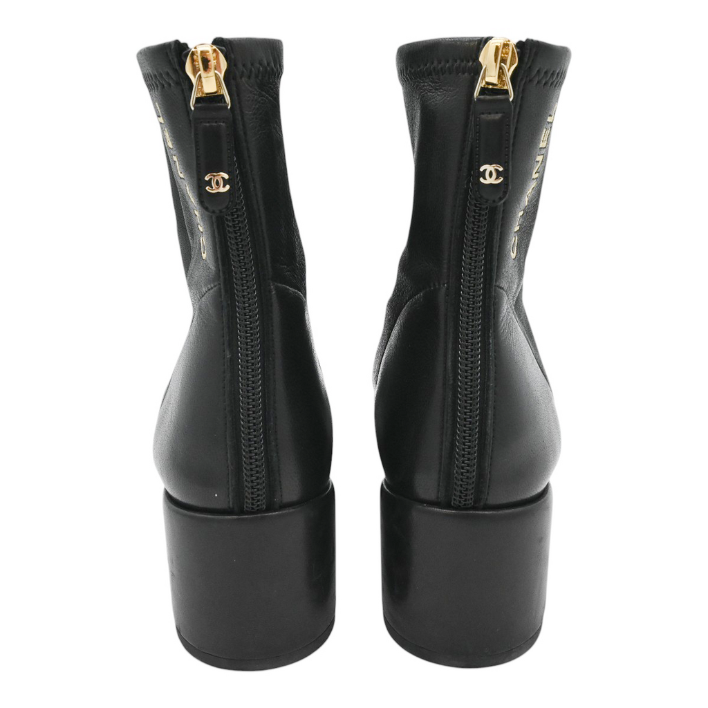 CHANEL | Black Leather Zip Booties Size 38.5