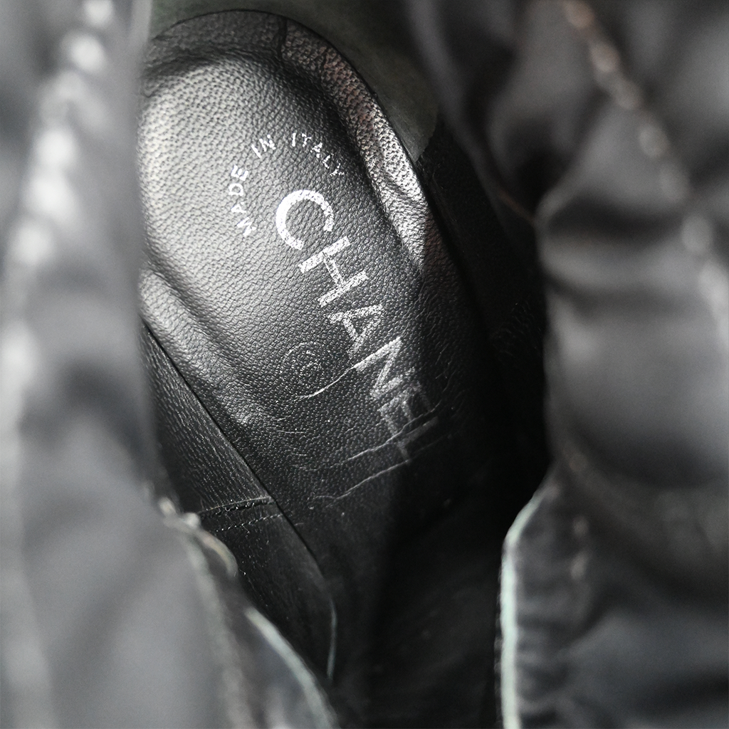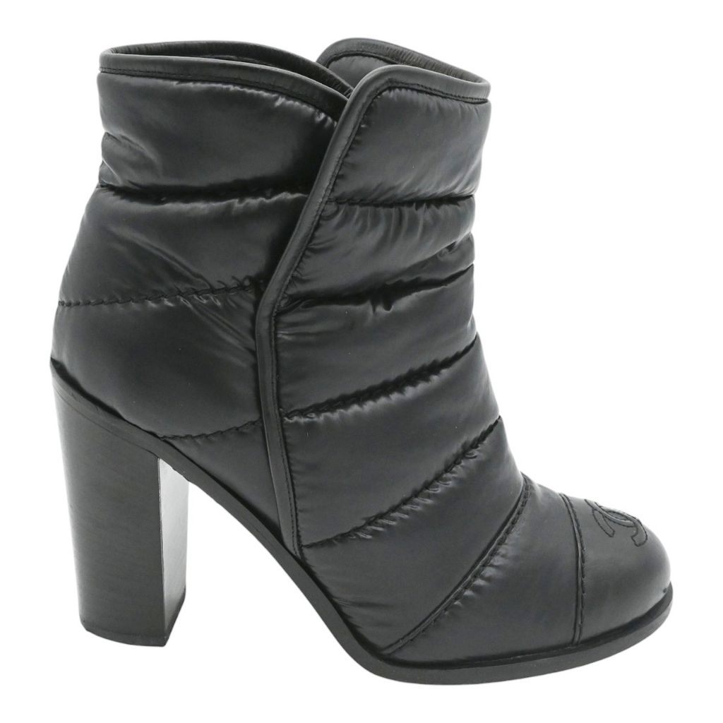 CHANEL | Black Nylon Quilted CC Booties Size 36.5