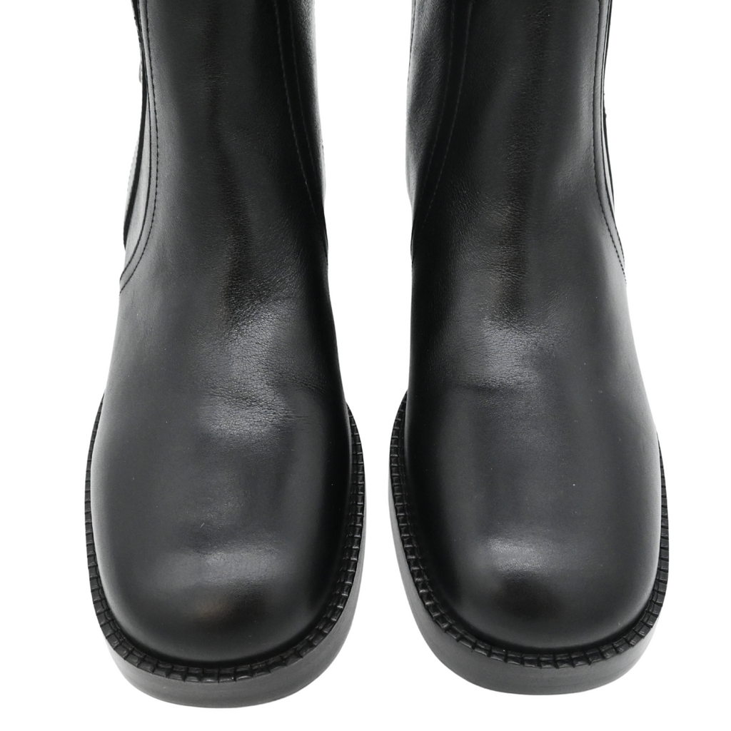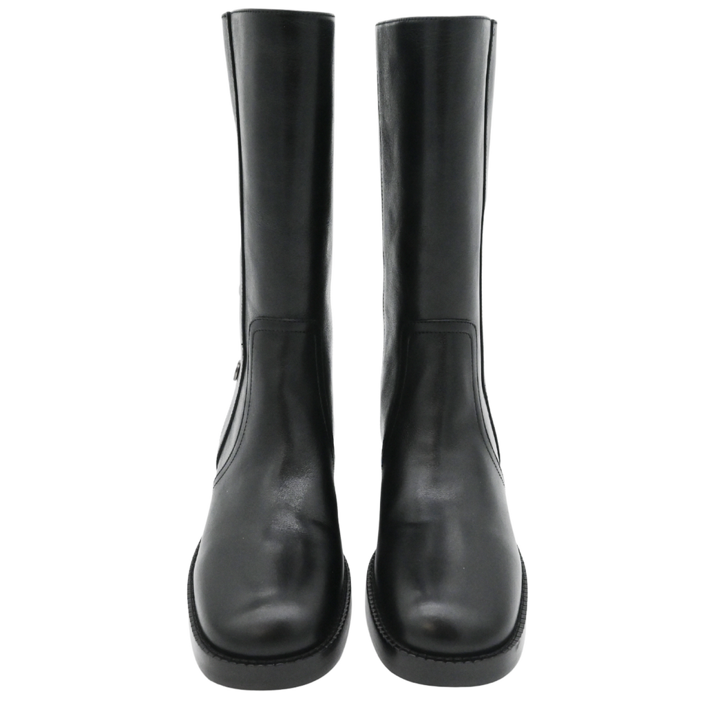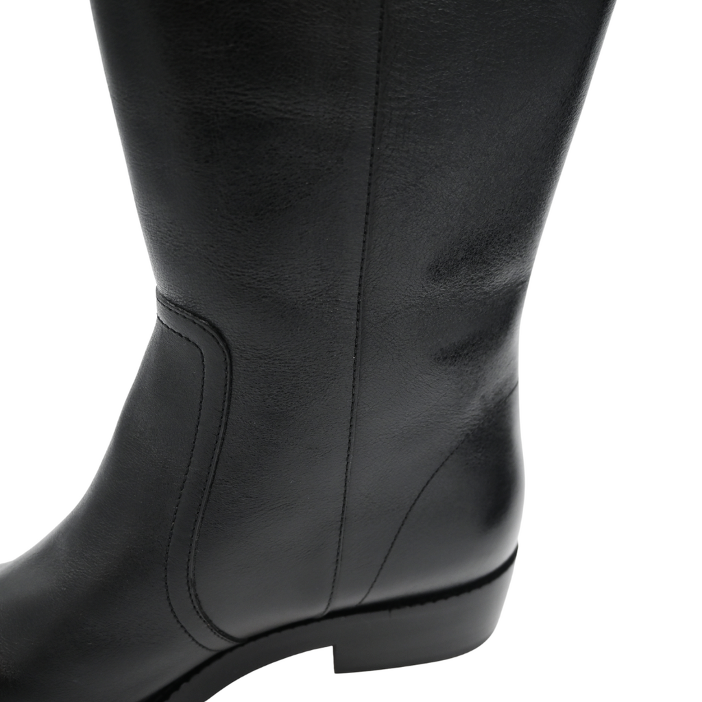 CHRISTIAN DIOR | Button-Accent Black Leather Riding Boots Size 37