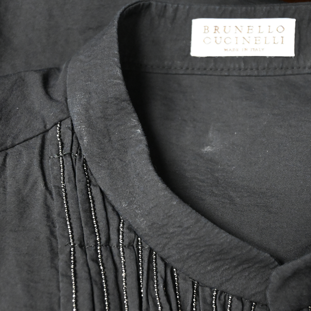 BRUNELLO CUCINELLI | Black Ruched Monili Cotton-Blend Dress Size Small