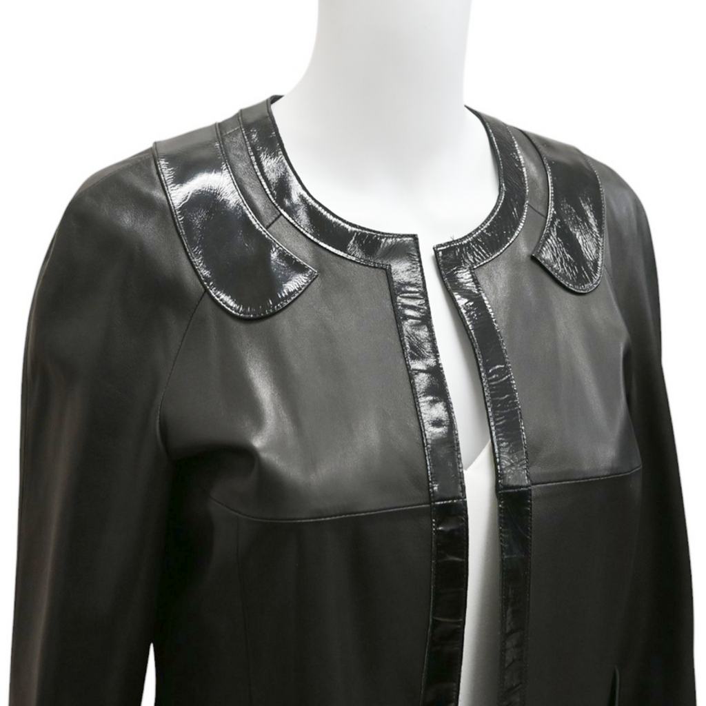 CHANEL | Black Lambskin Leather Open Jacket Size 42