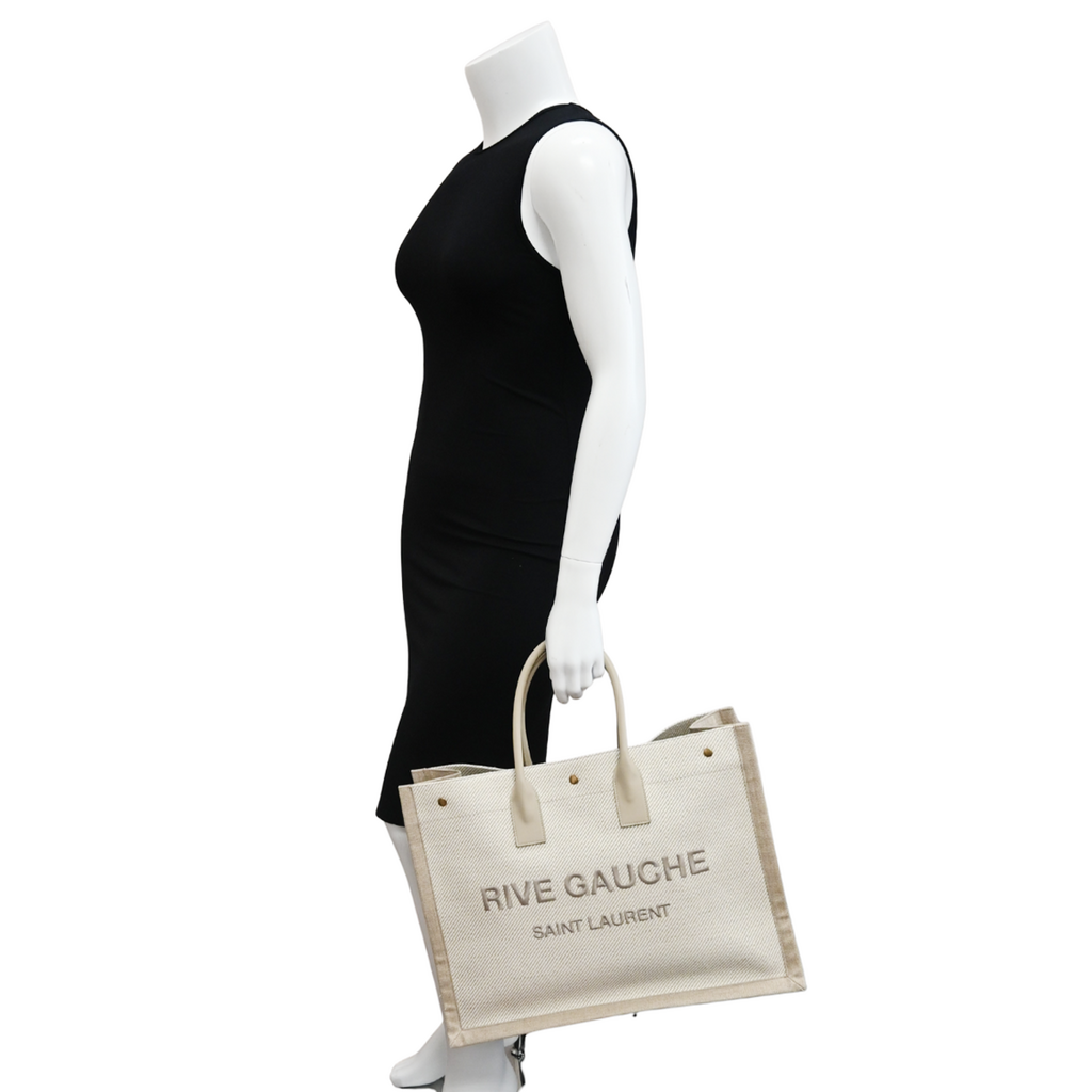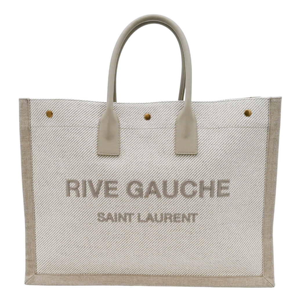 SAINT LAURENT | Beige Canvas Rive Gauche Tote Bag
