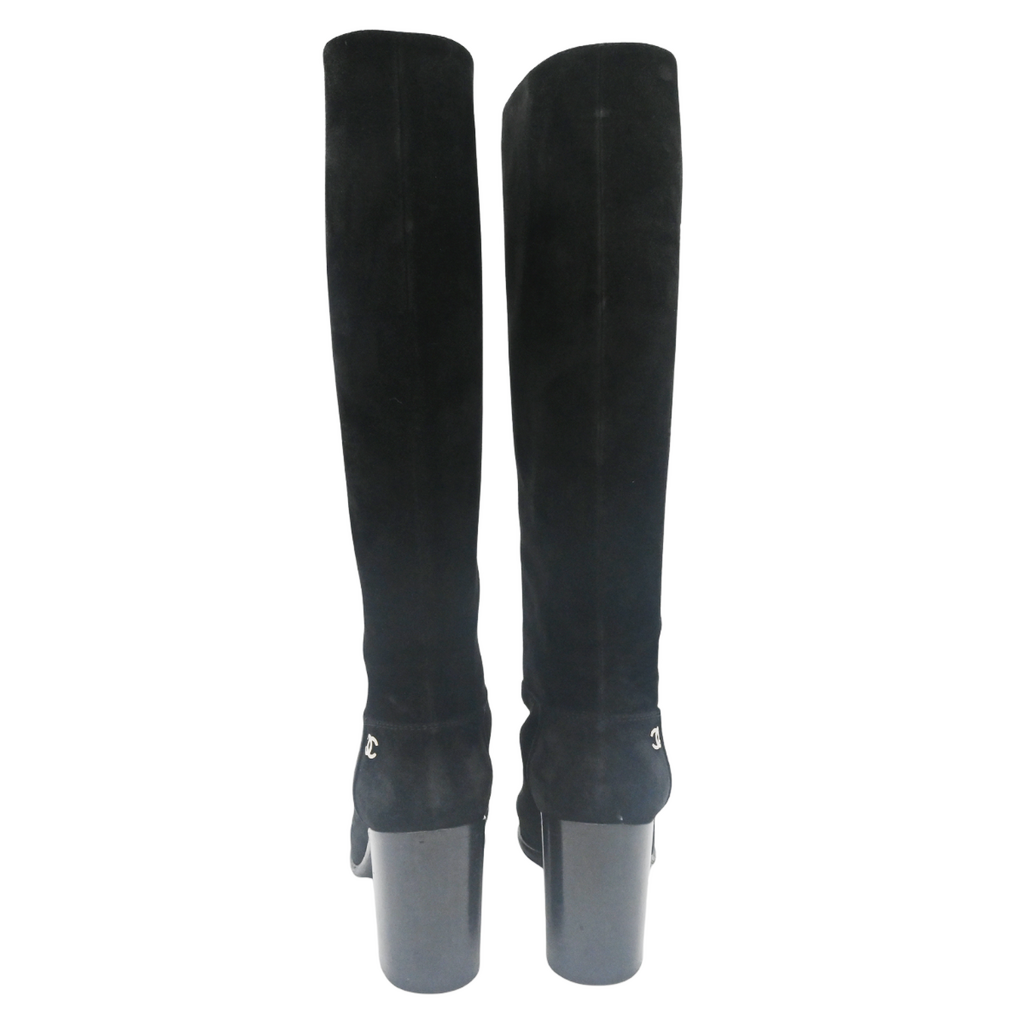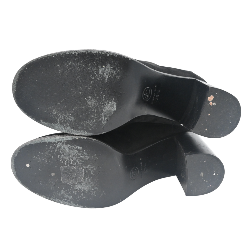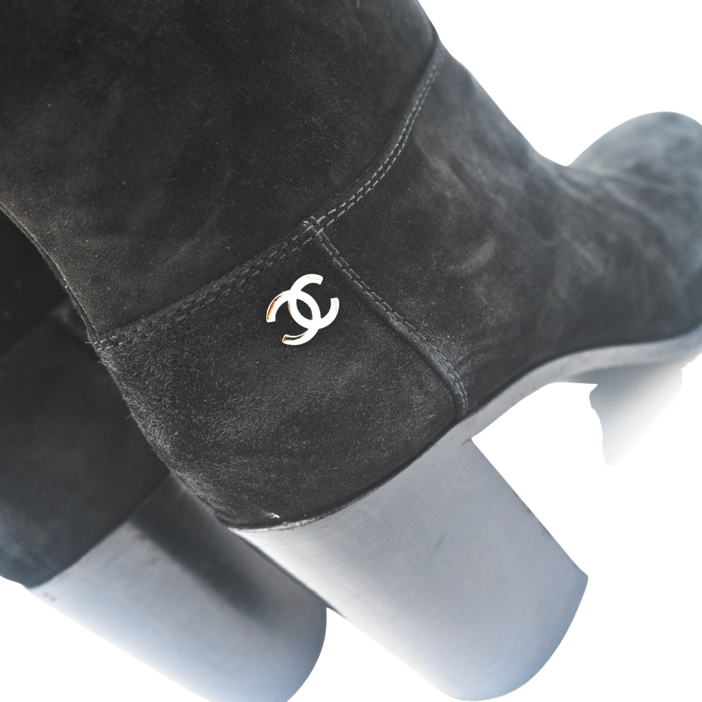 CHANEL | Black Suede CC Logo Boots Size 38.5