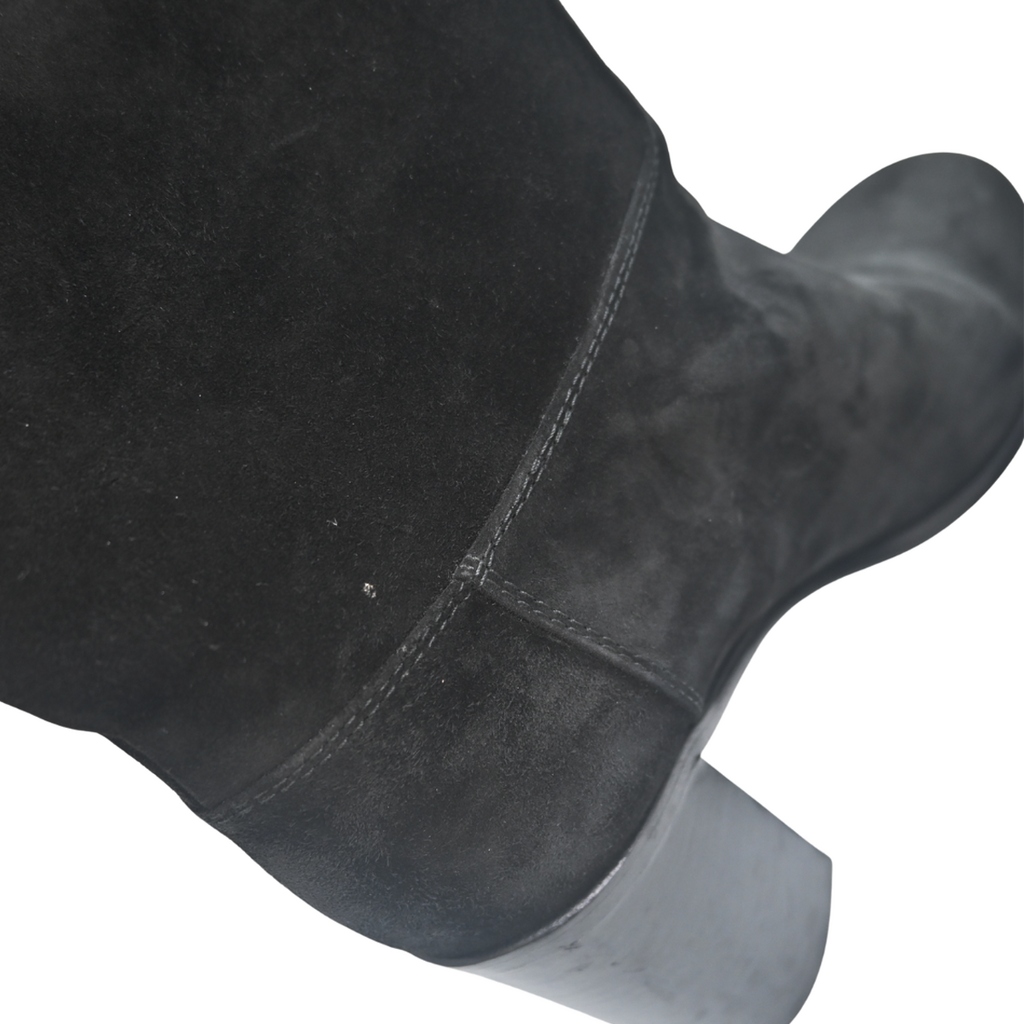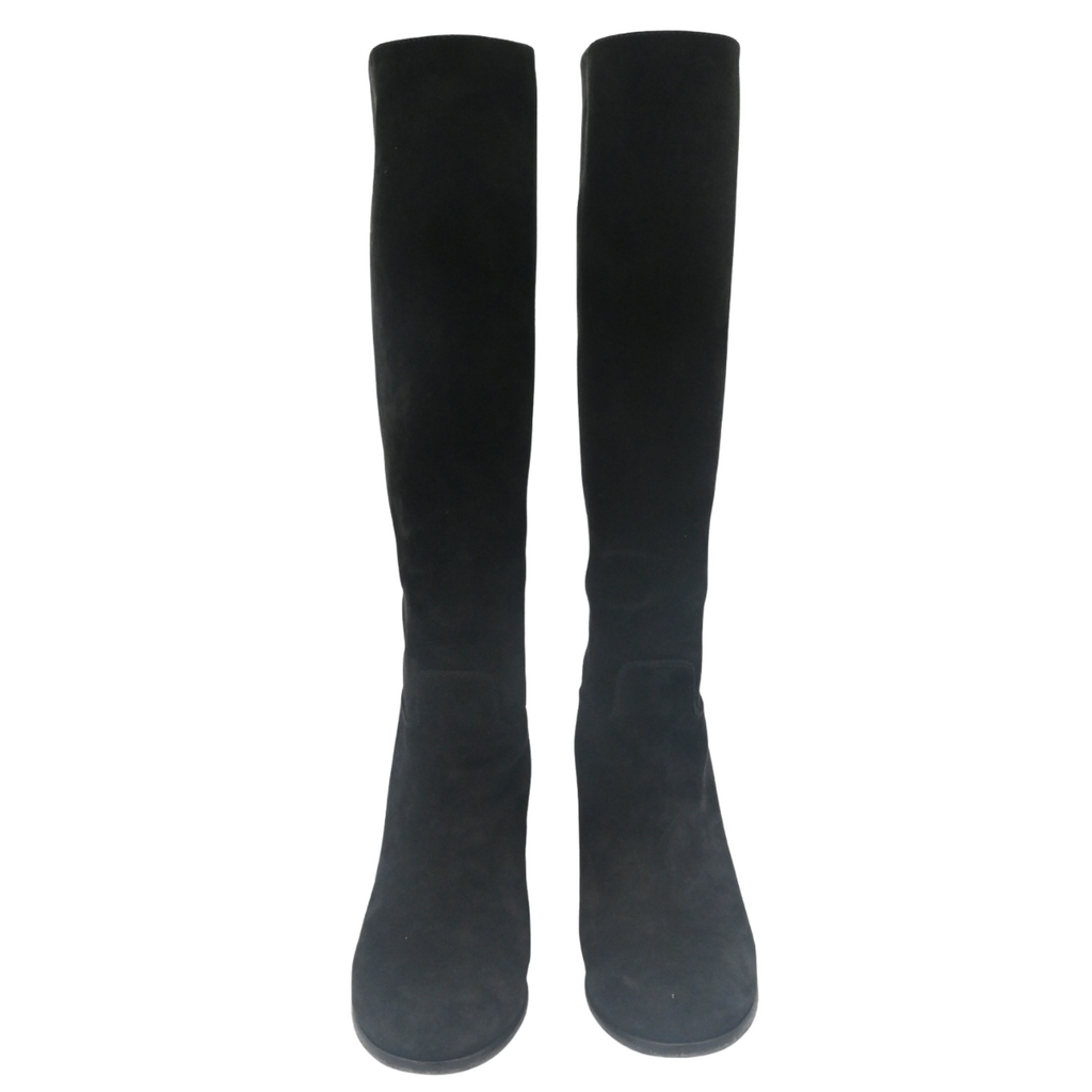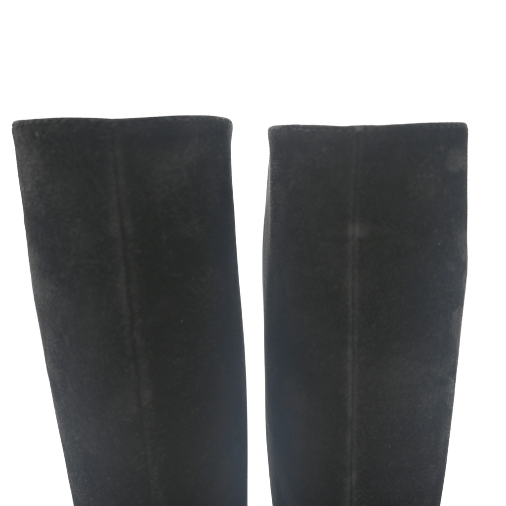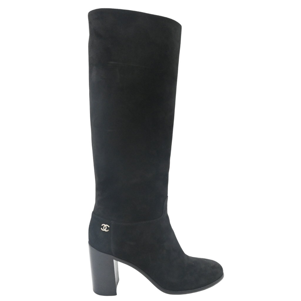 CHANEL | Black Suede CC Logo Boots Size 38.5