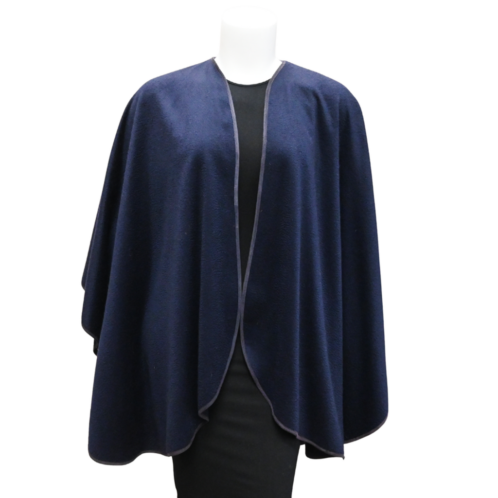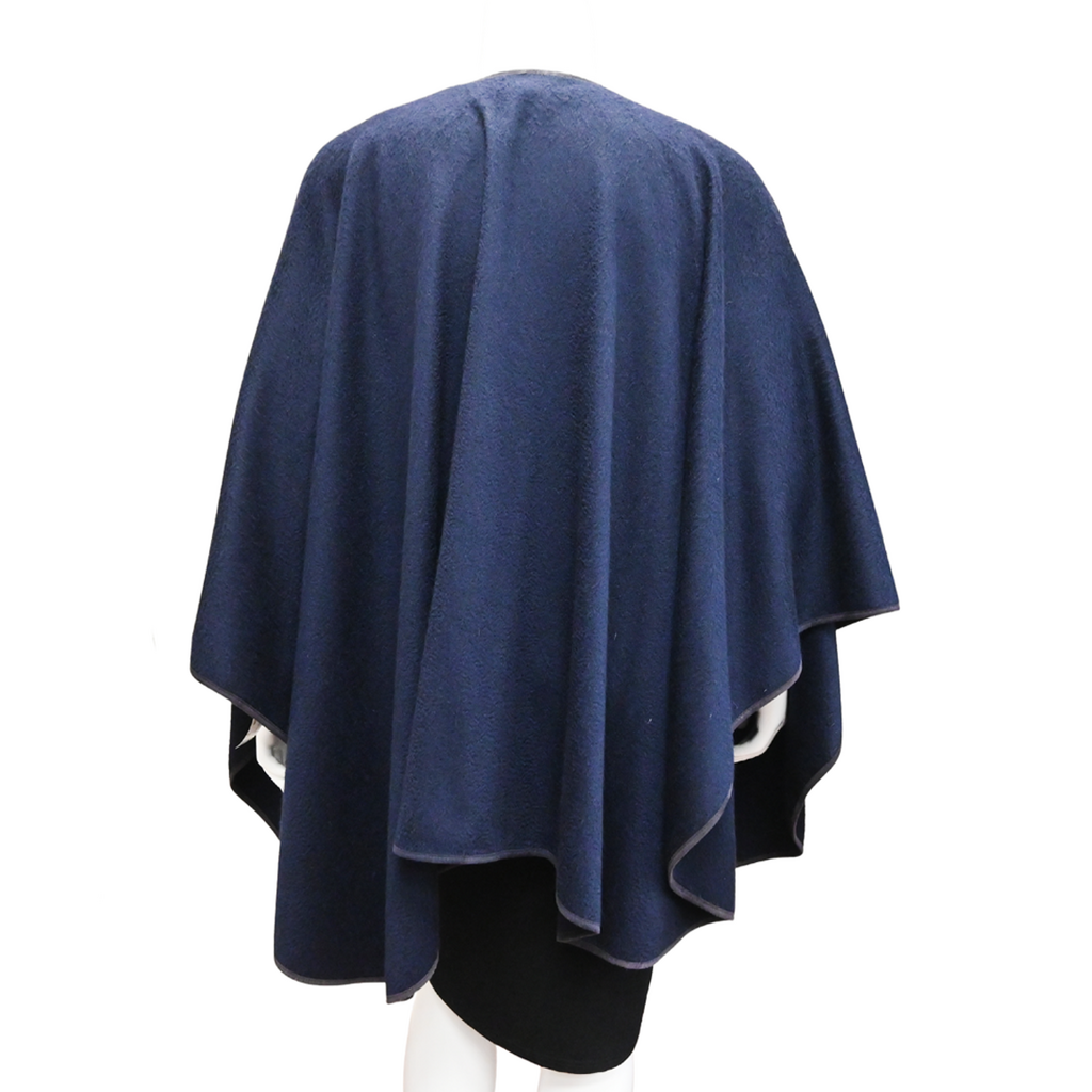 LORO PIANA | Navy Blue Suede-Trim Cashmere Cape Size O/S