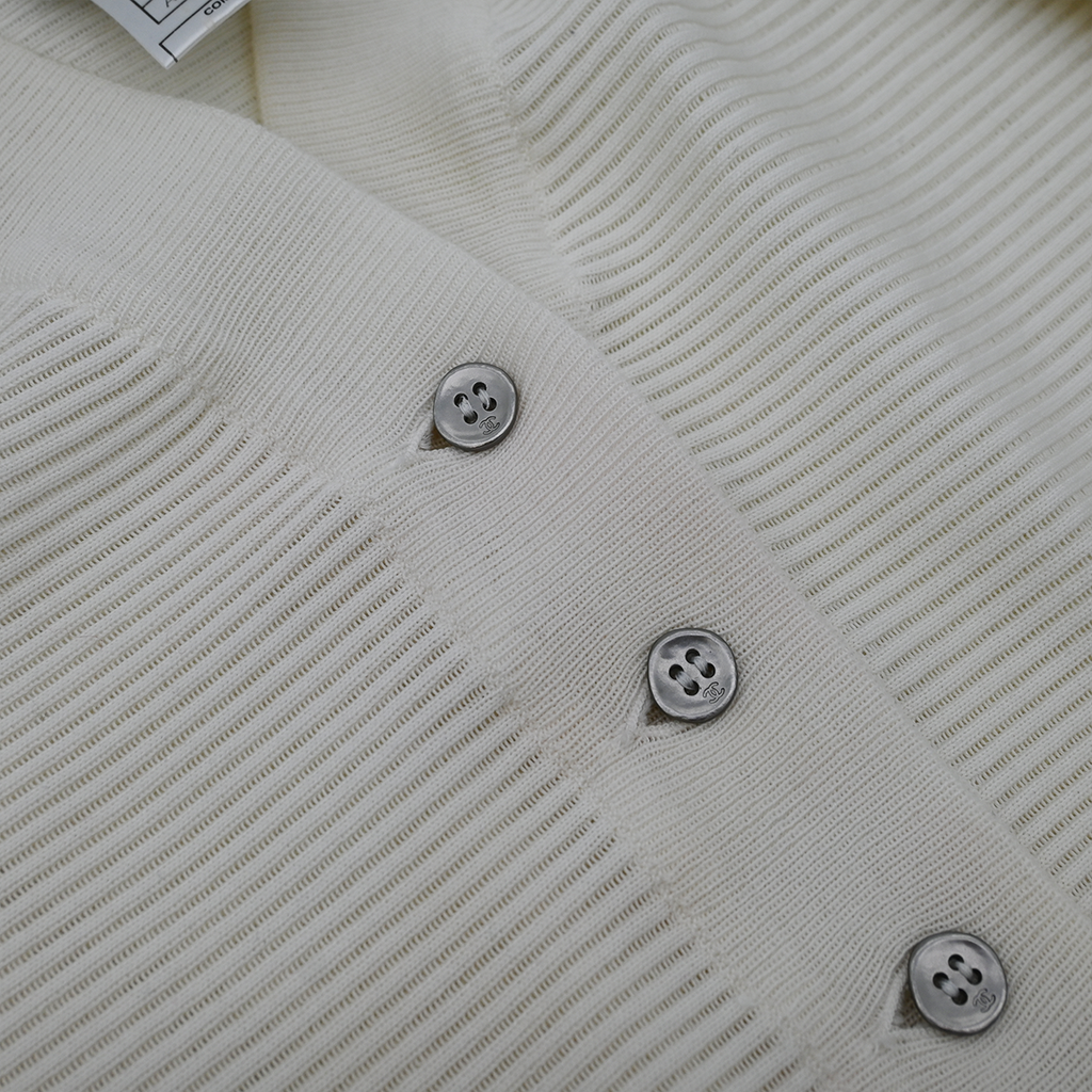 CHANEL | White Ribbed Knit Cardigan Size 42