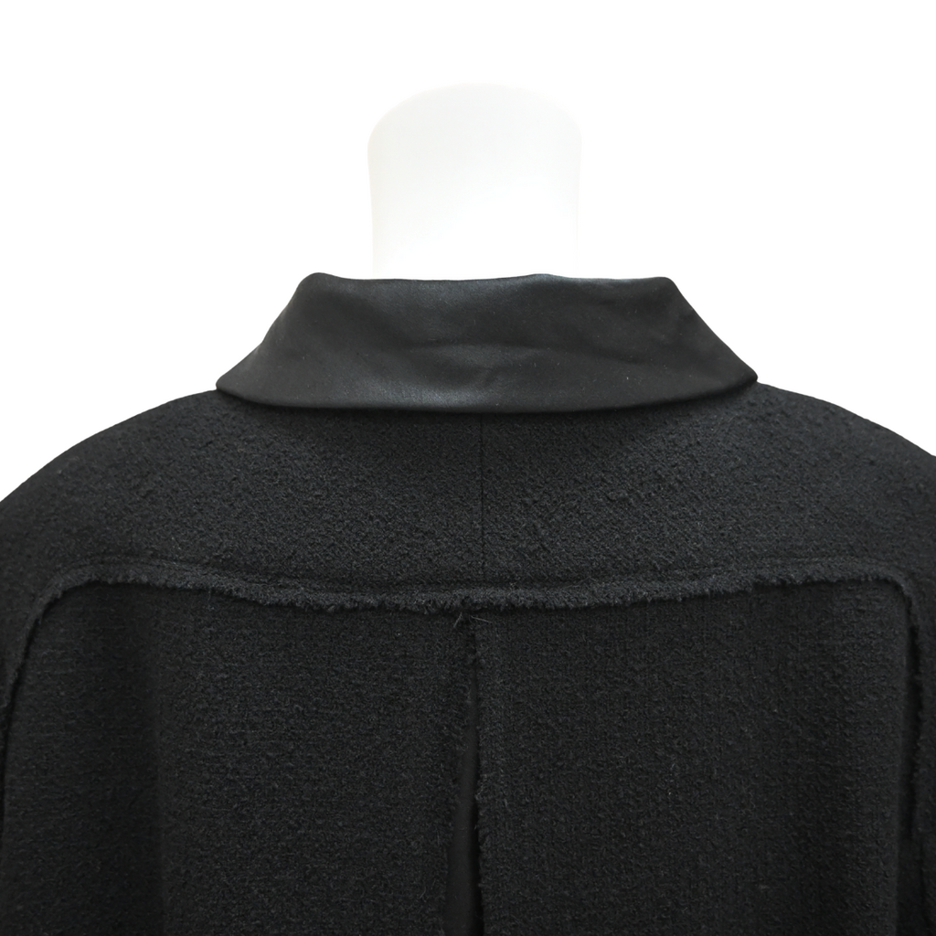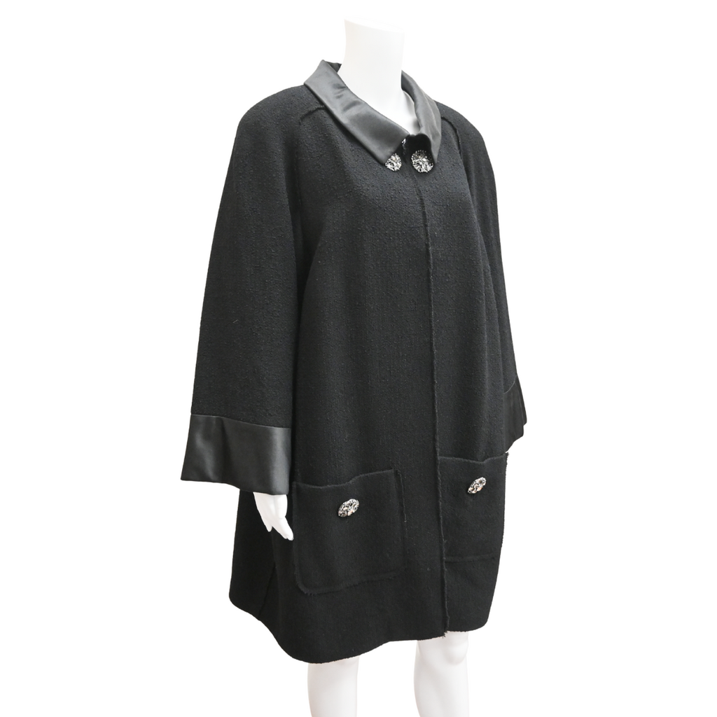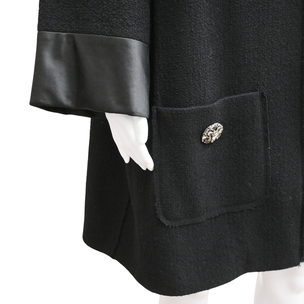 CHANEL | Black Tweed Satin Trim Overcoat Size 48