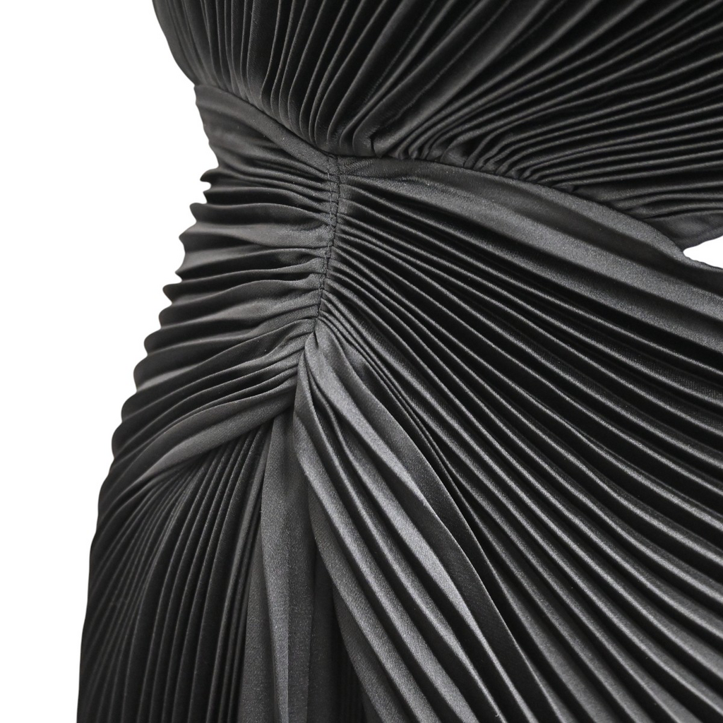 Black pleated satin polyester fabric shell