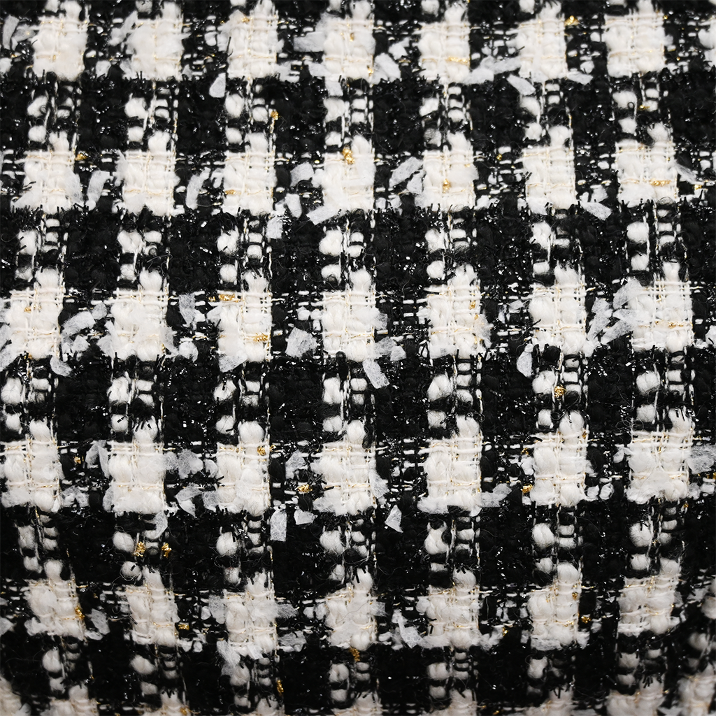 Gold metallic threading throughout tweed