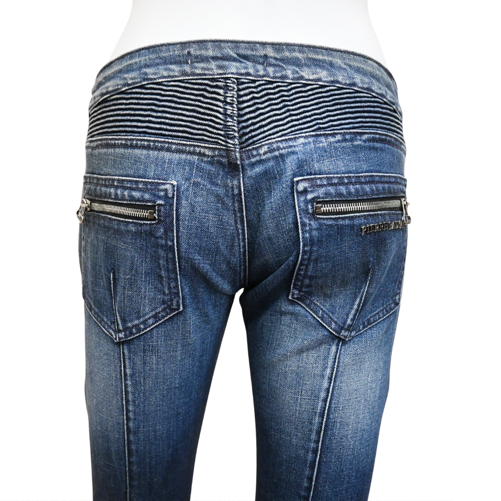 PIERRE BALMAIN | Blue Wash Moto Skinny Jeans Size 26 / US 2