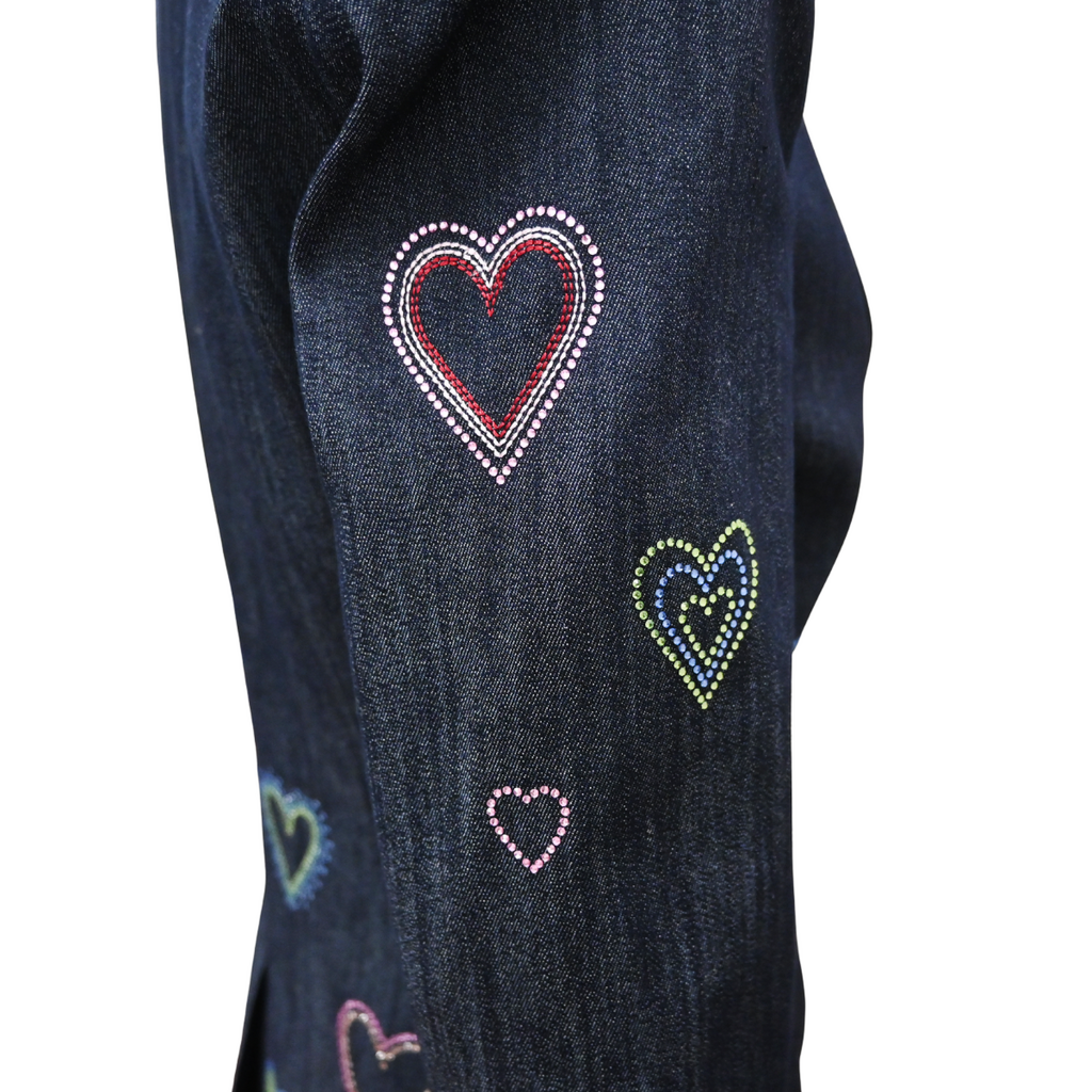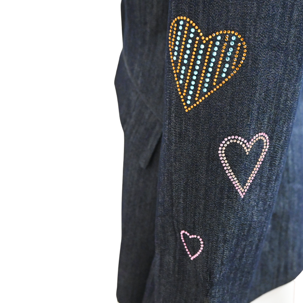 Multicolor rhinestones in heart patterns