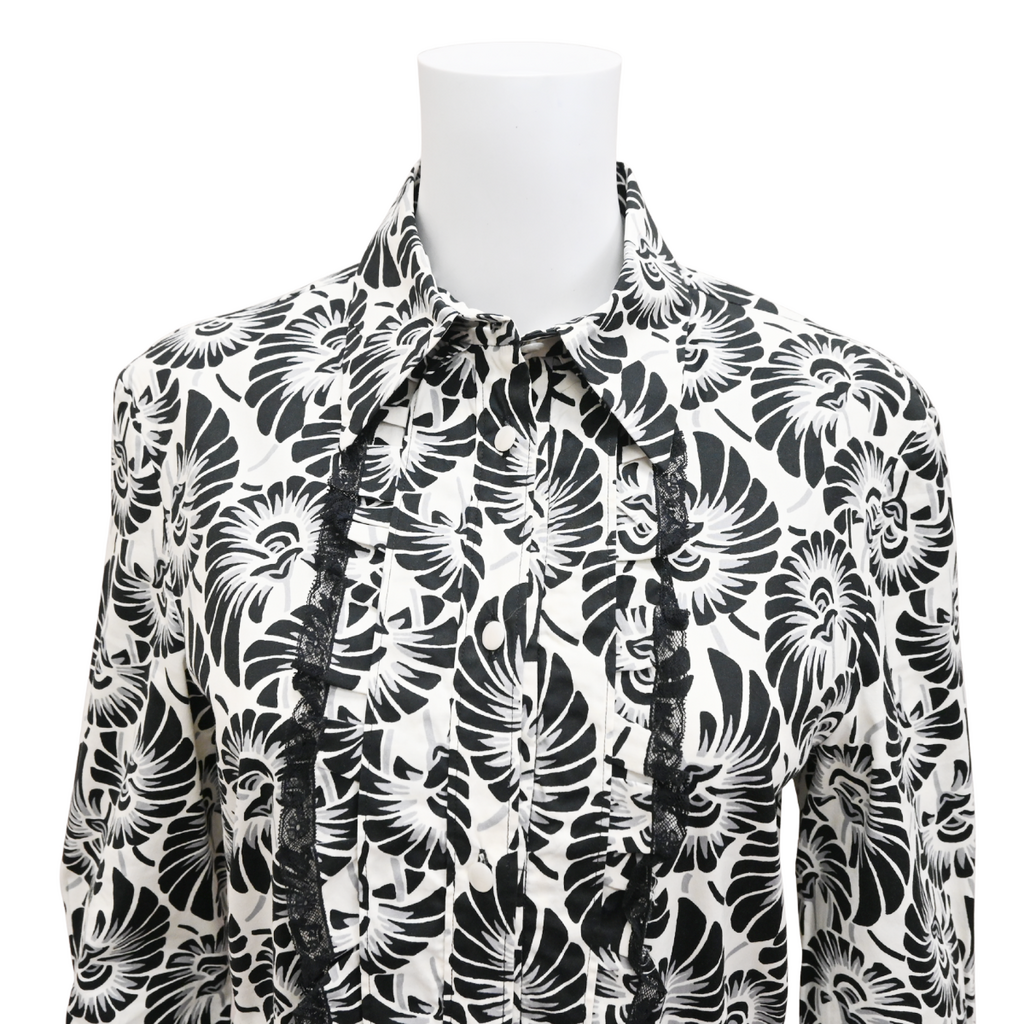 PRADA | Abstract Floral Print Cotton Shirt Dress Size 40