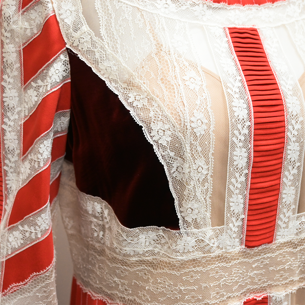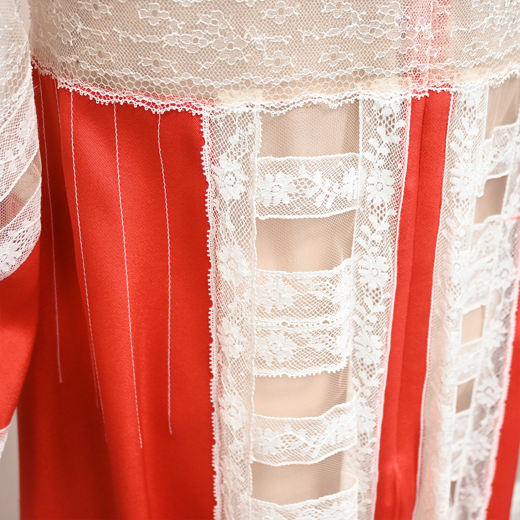 VALENTINO | Red Lace-Trim Midi Dress Size 46 / Approx. Medium