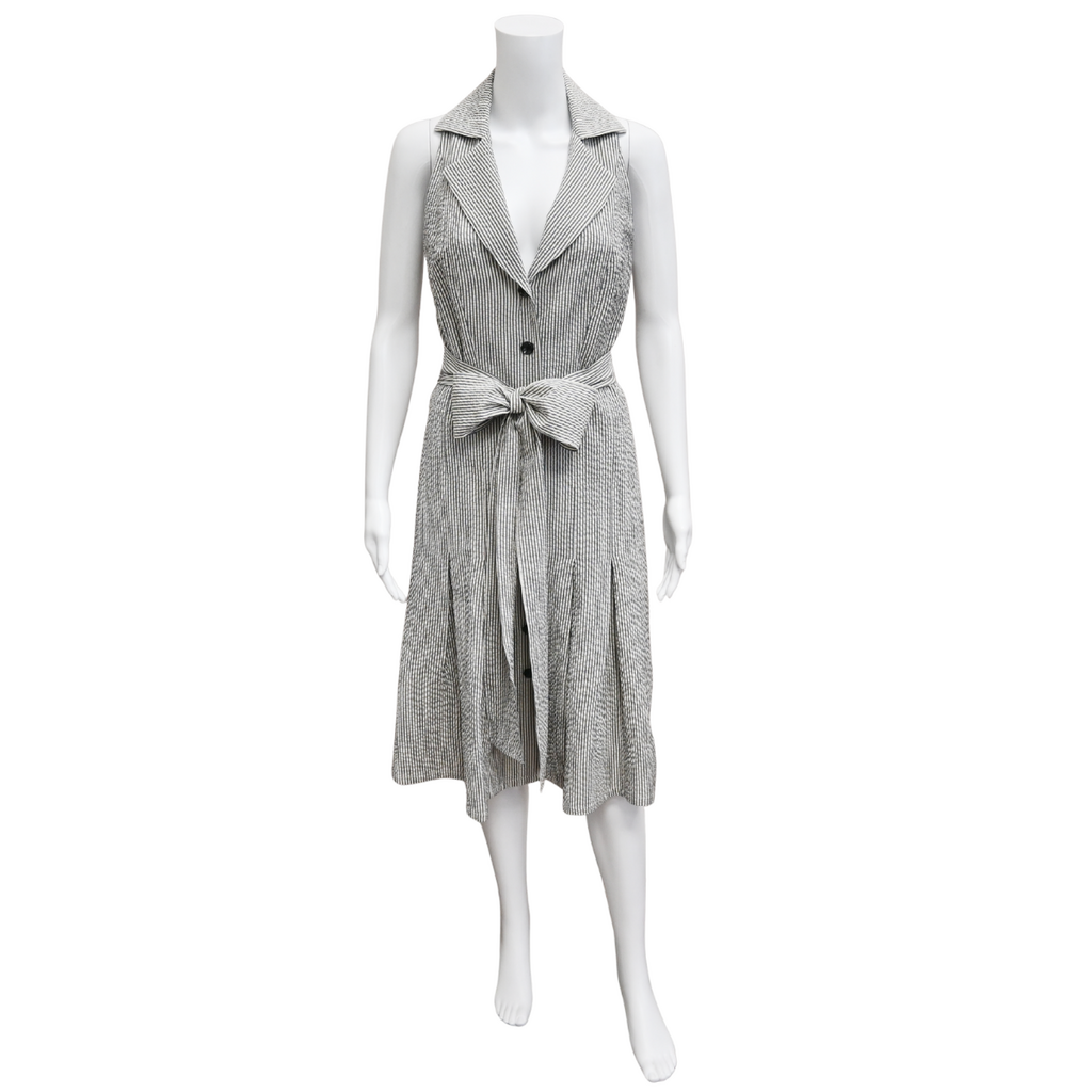 CAROLINA HERRERA | Striped Seersucker Belted Dress Size 4