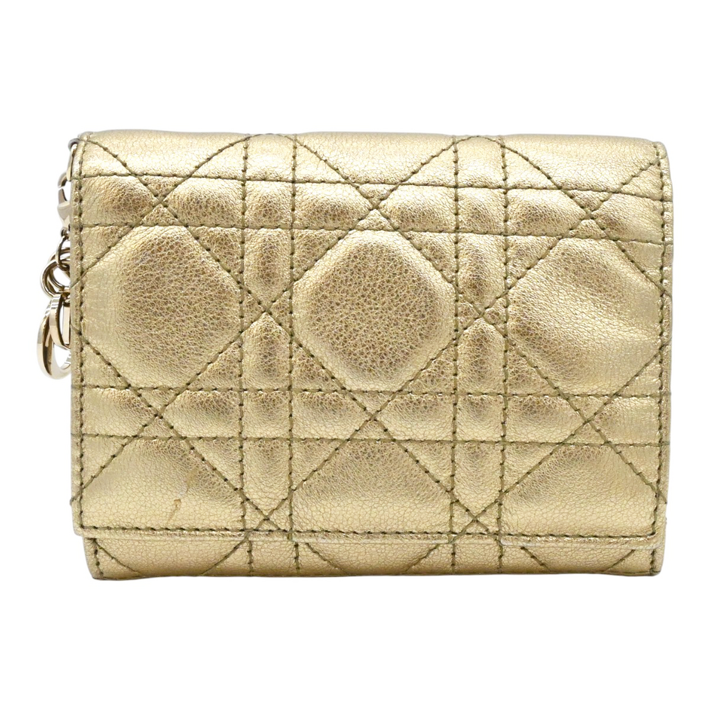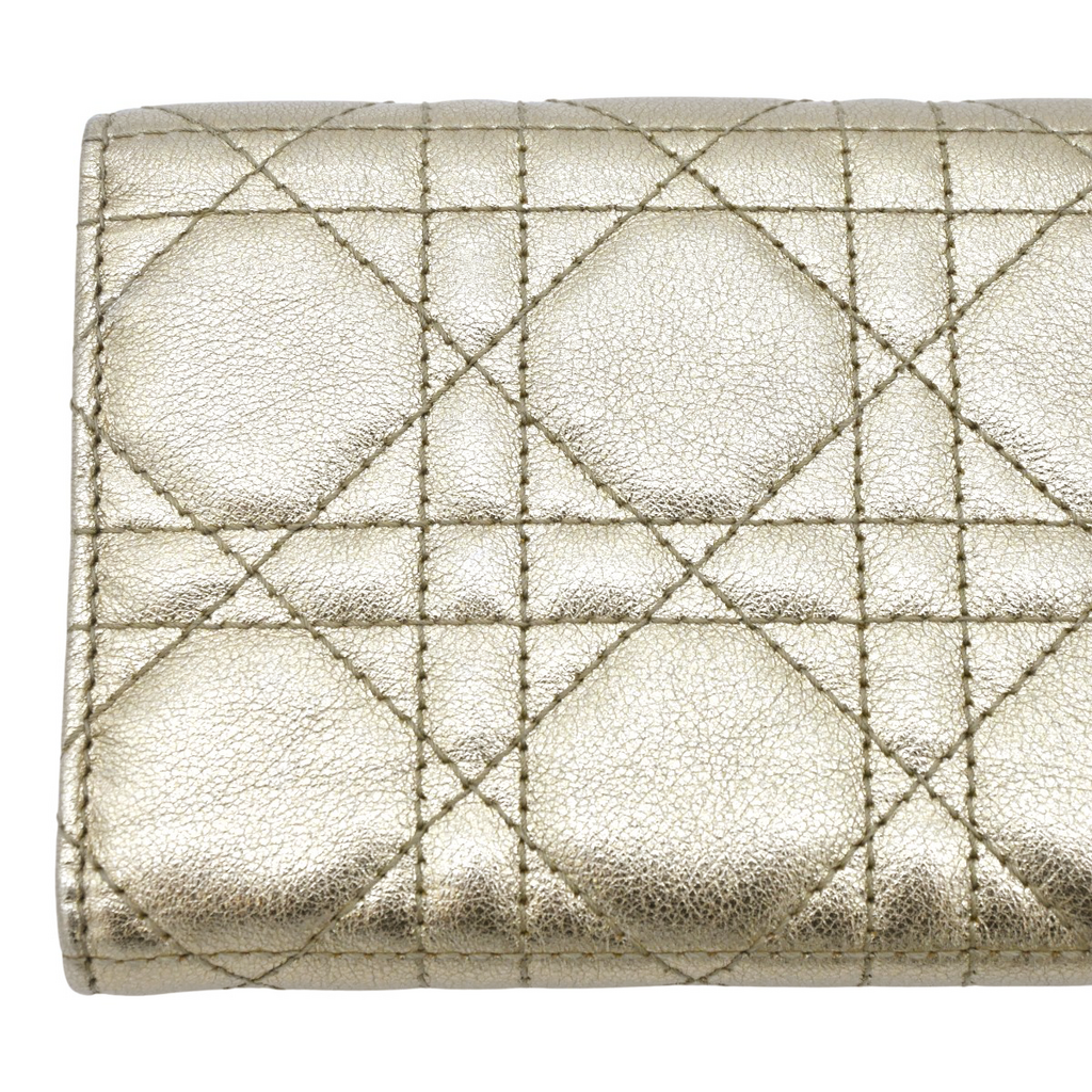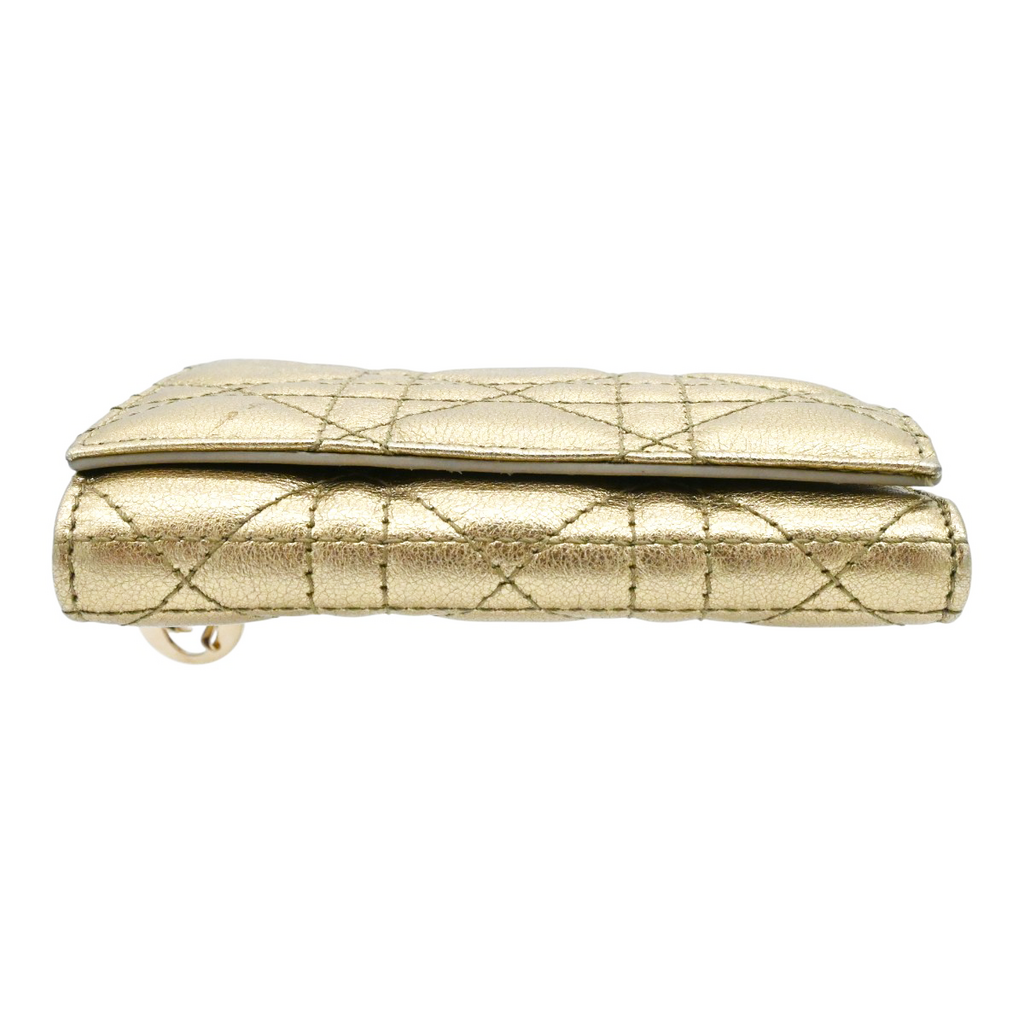 CHRISTIAN DIOR | Gold Metallic Lady Dior Lotus Wallet