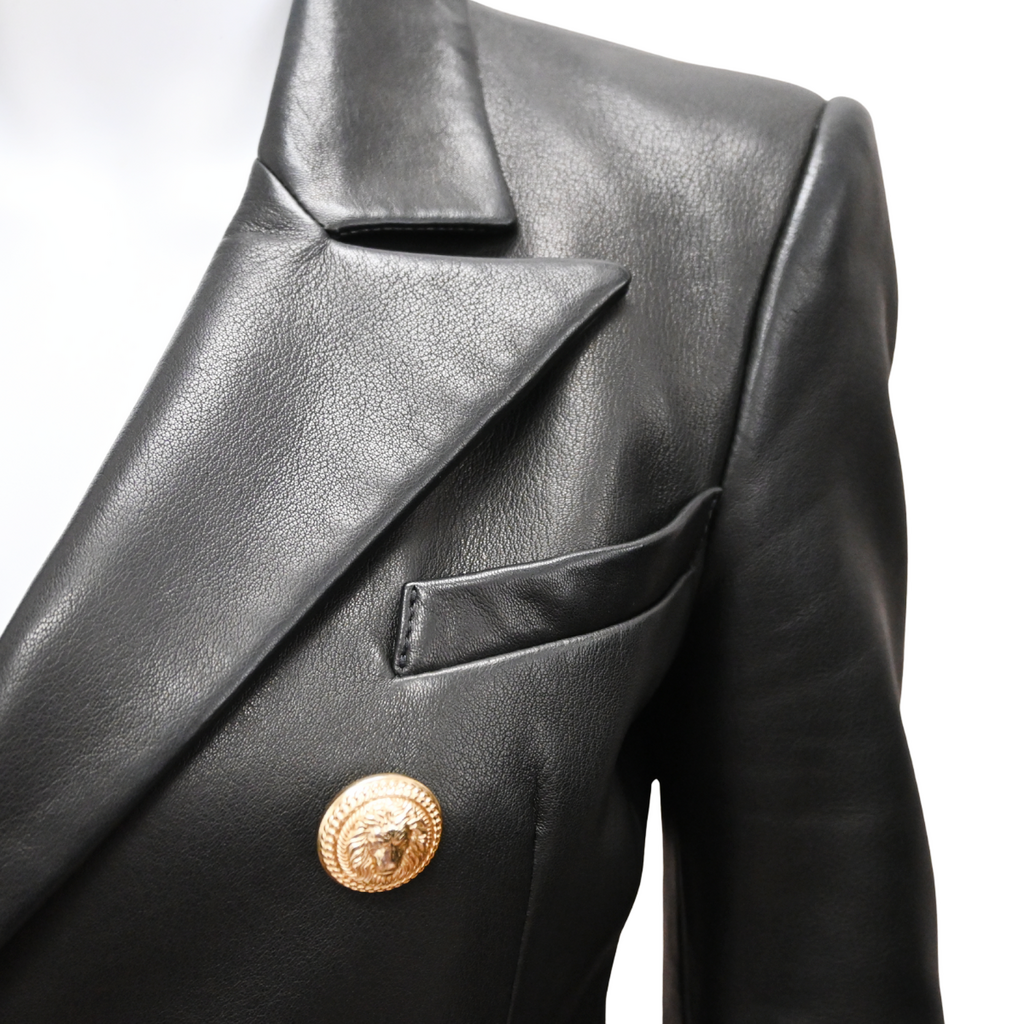 BALMAIN PARIS | Black Double-Breasted Leather Blazer Size 36