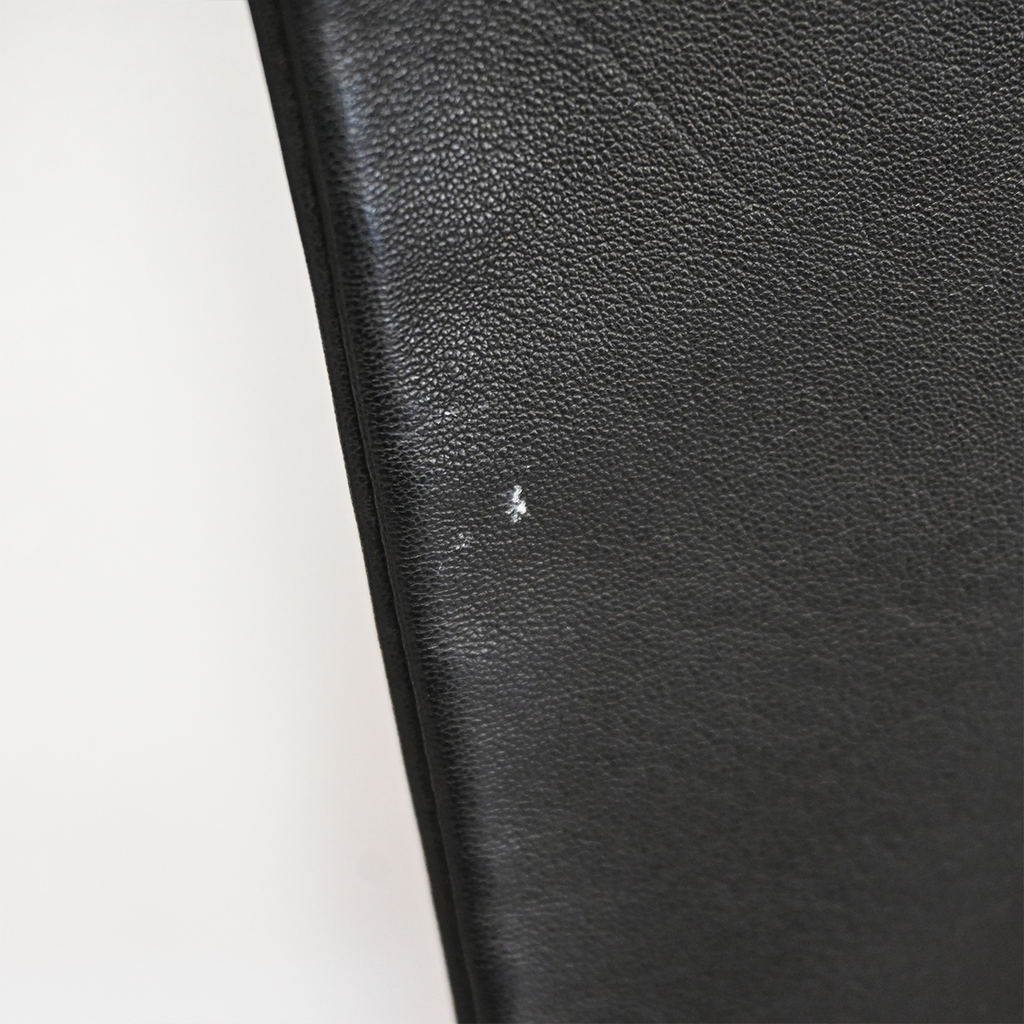 Gently used, with small stains at lining, expected crease marks from useage, minor discoloration at leather at back shoulders, & small white spots at outer leather.