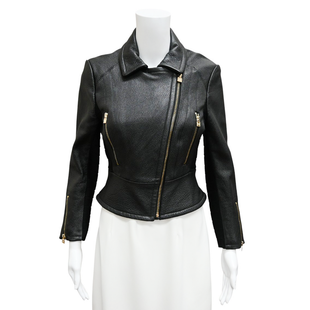 HERVE LEGER | Salene Black Leather Moto Jacket Size S
