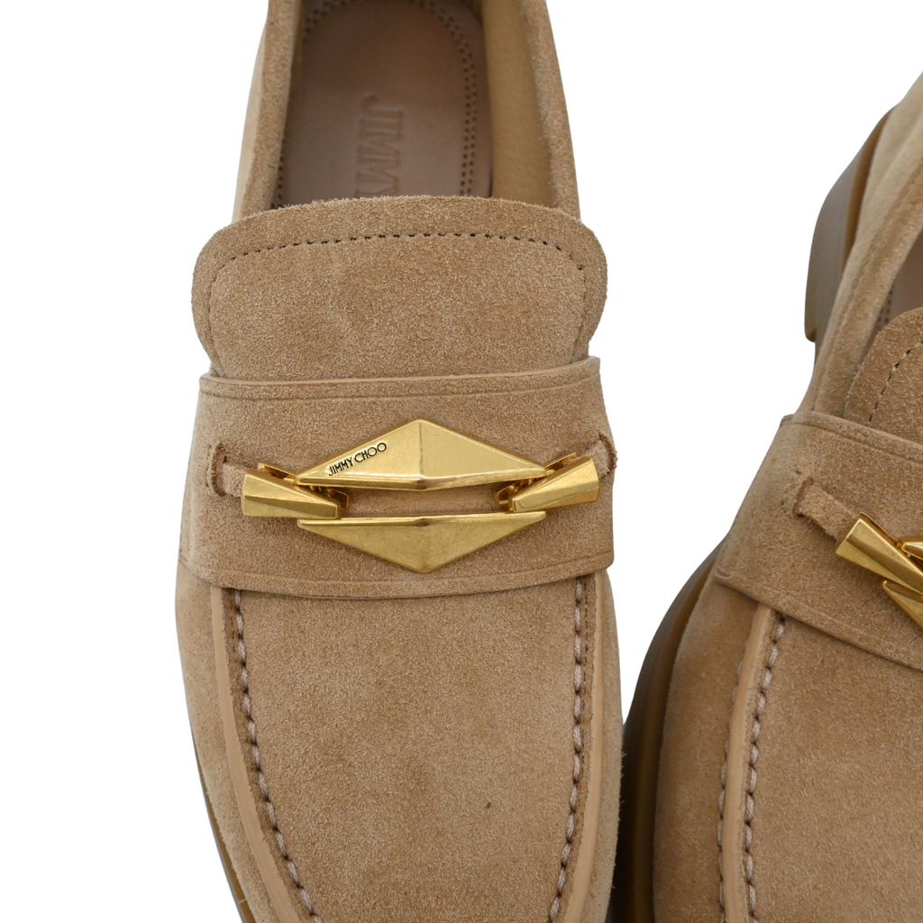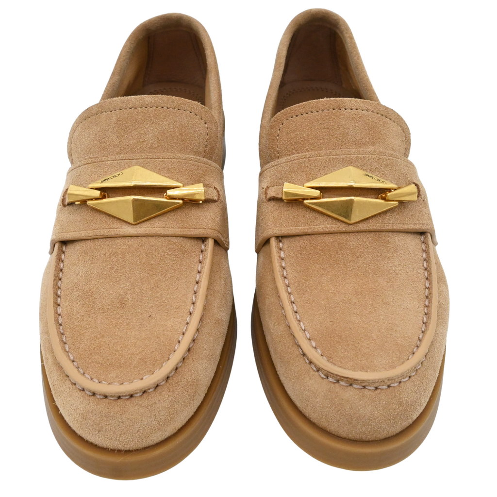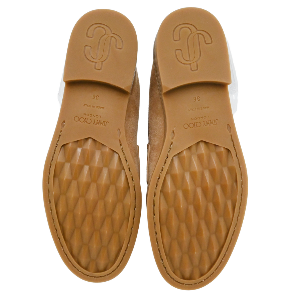 JIMMY CHOO | Maddie Diamond Biscuit Suede Loafers Size 36