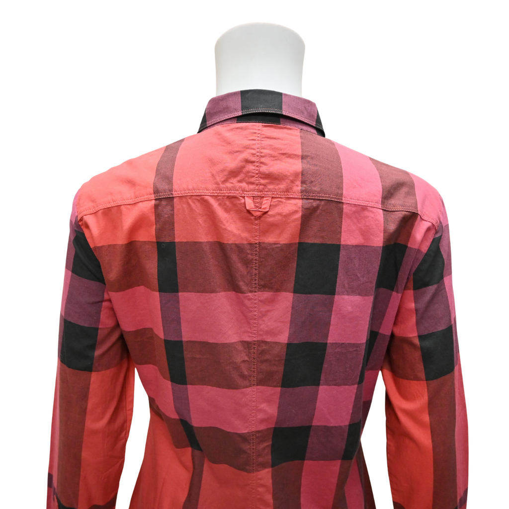 BURBERRY BRIT | Red & Black Nova Check Plaid Print Blouse  Size Small