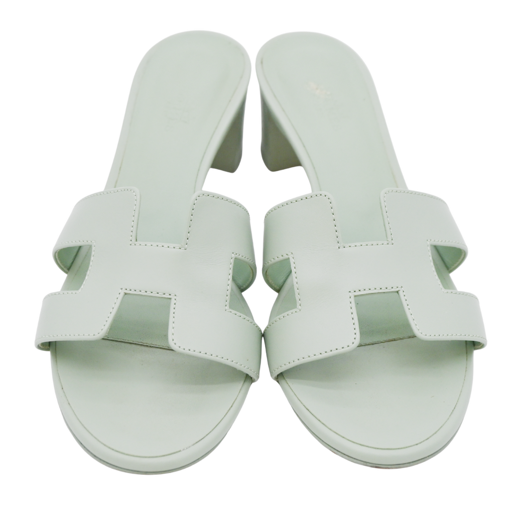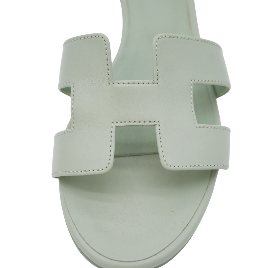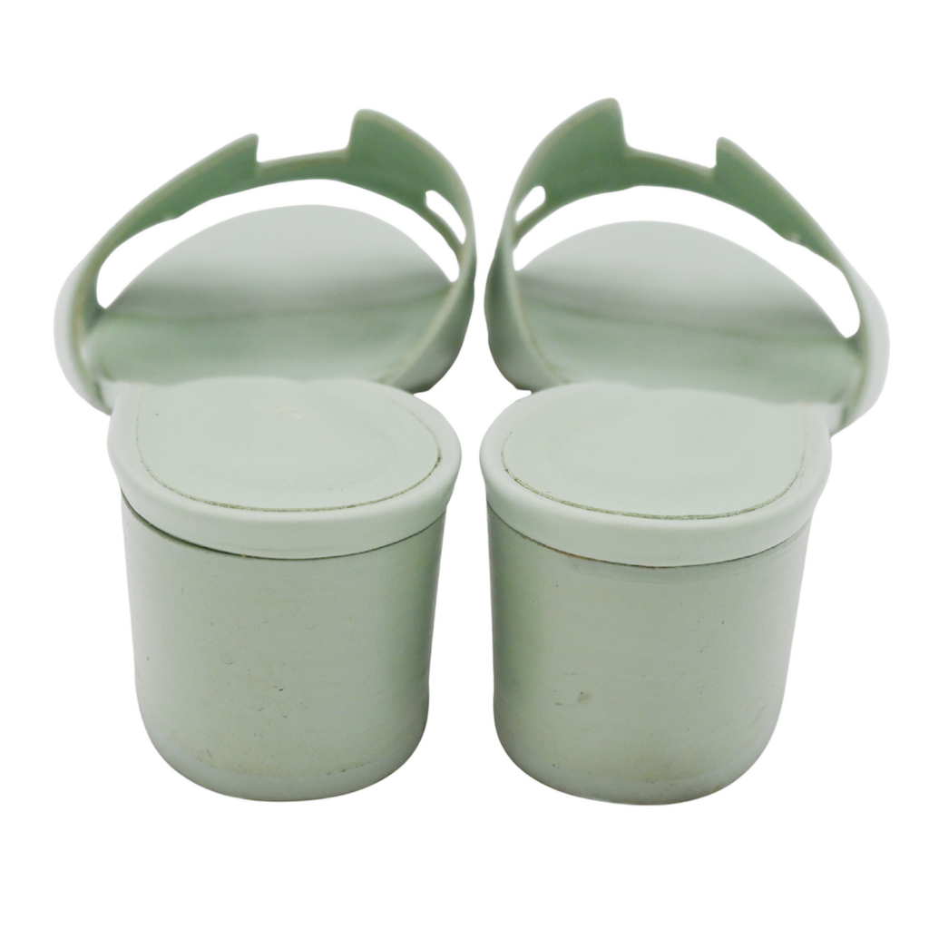 HERMES | Oasis Mint Green Leather Sandal Mules Size 38