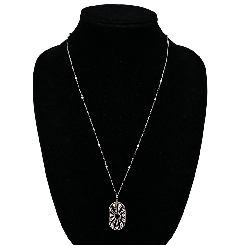 Faceted black onyx stone at pendant center