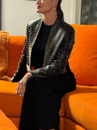 Pippa Blue Iko Slate Leather Boxy Jacket