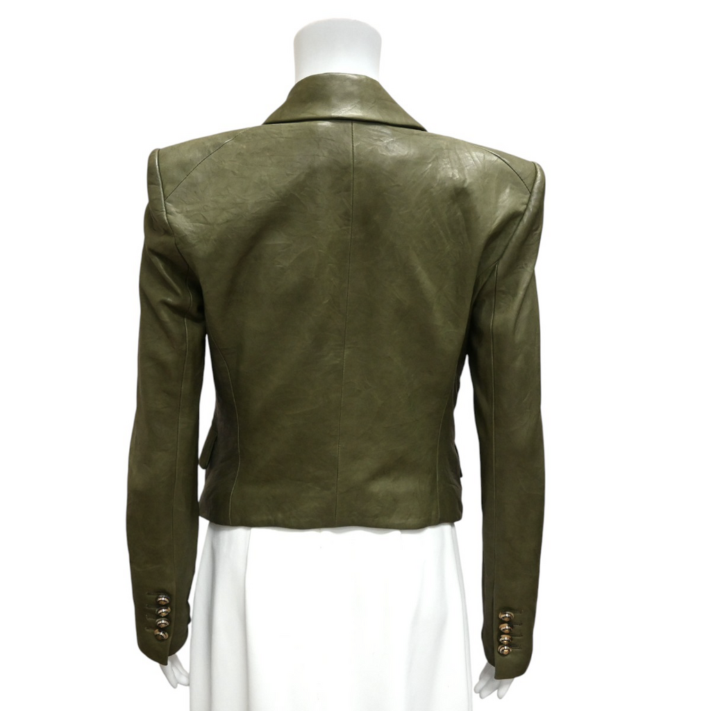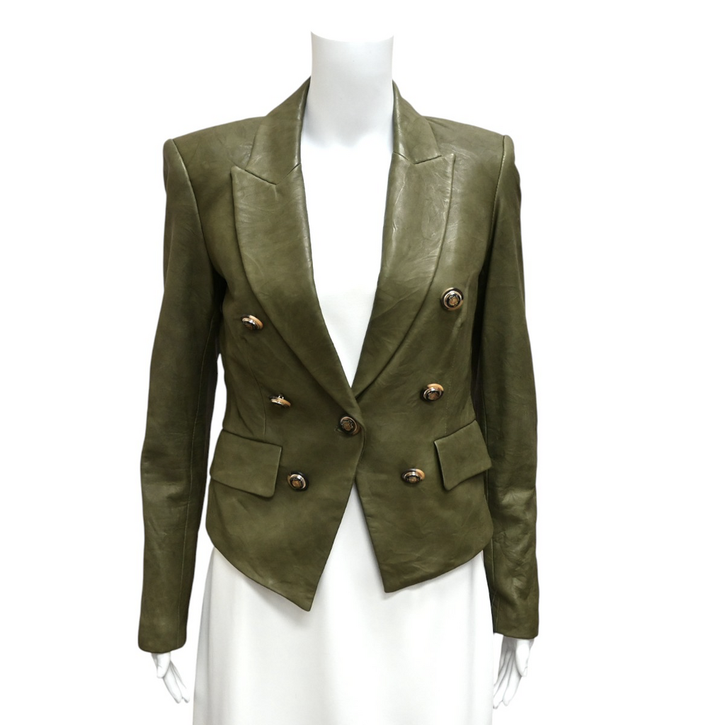 Cooke Olive Leather Double-Breasted Blazer