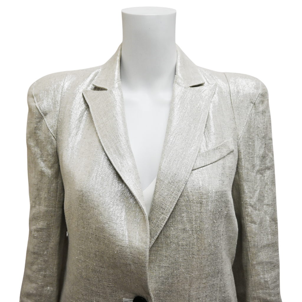 SMYTHE | Metallic Silver Linen Blazer Size 6