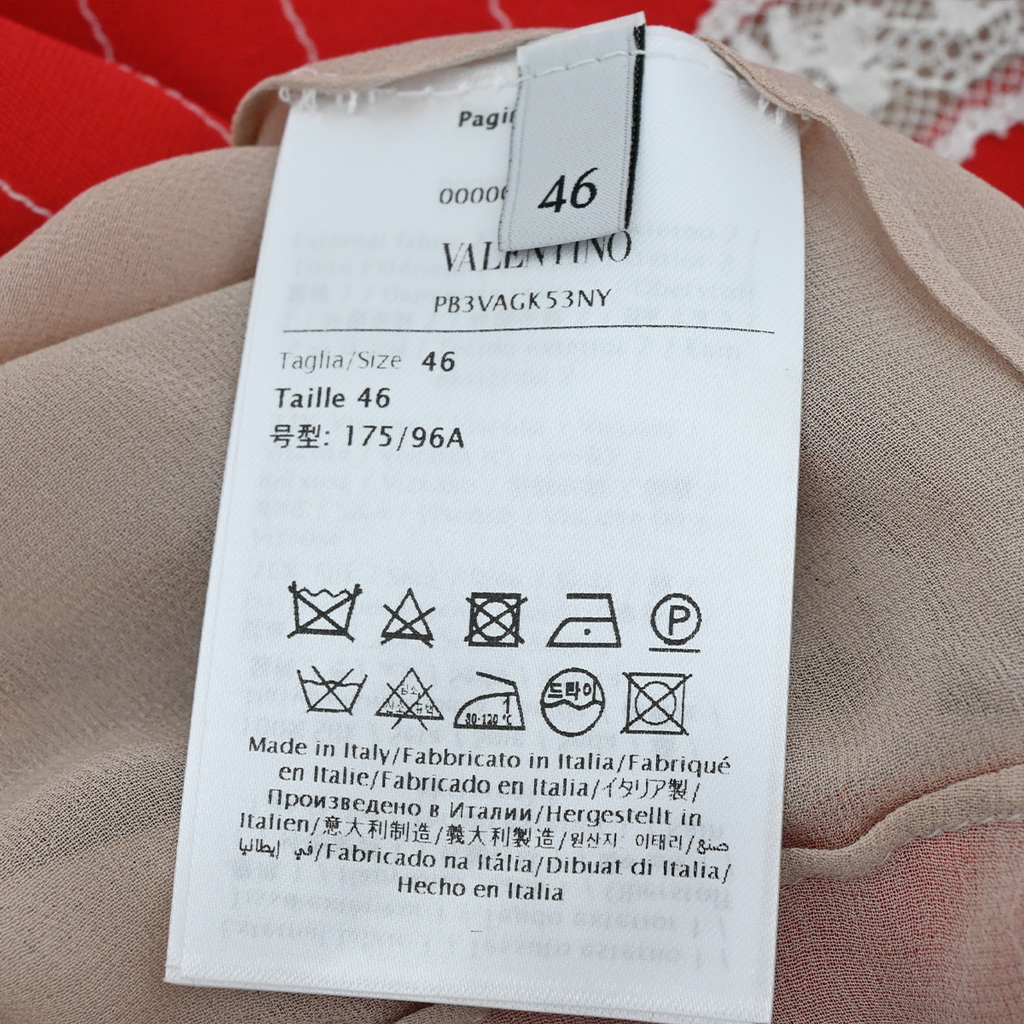 VALENTINO | Red Lace-Trim Midi Dress Size 46 / Approx. Medium