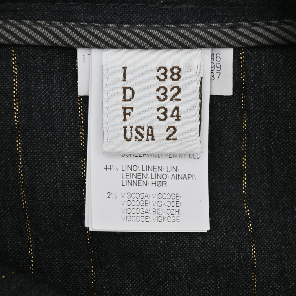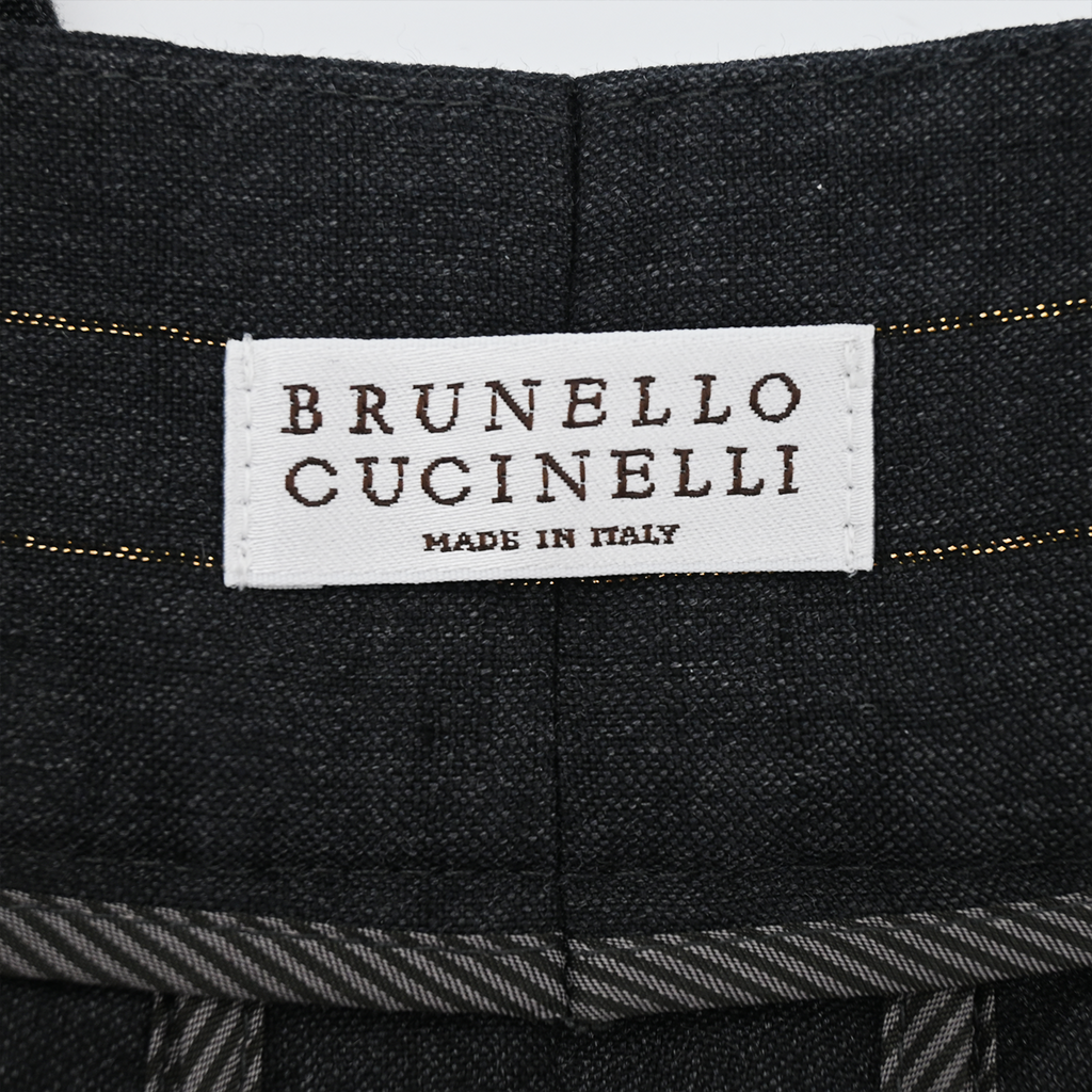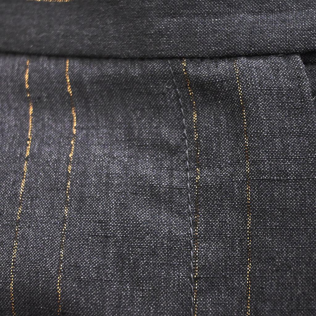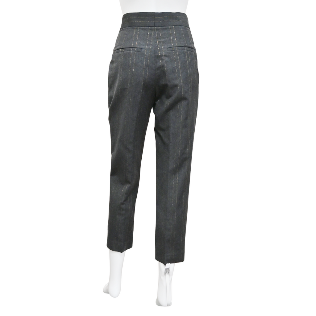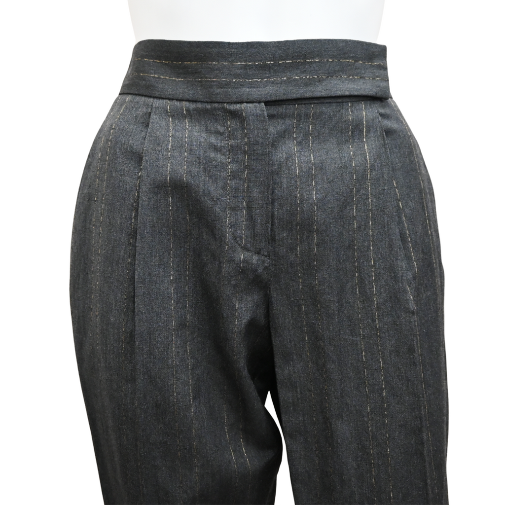 BRUNELLO CUCINELLI | Charcoal Gold Metallic Pinstriped Pants Size US 2