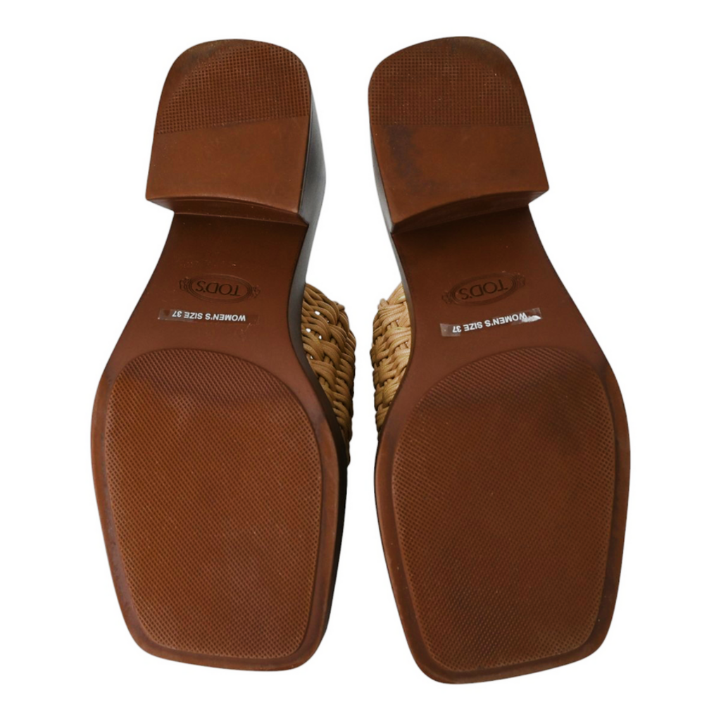 TOD'S | Braided Beige & Brown Block Platform Sandals Size 37