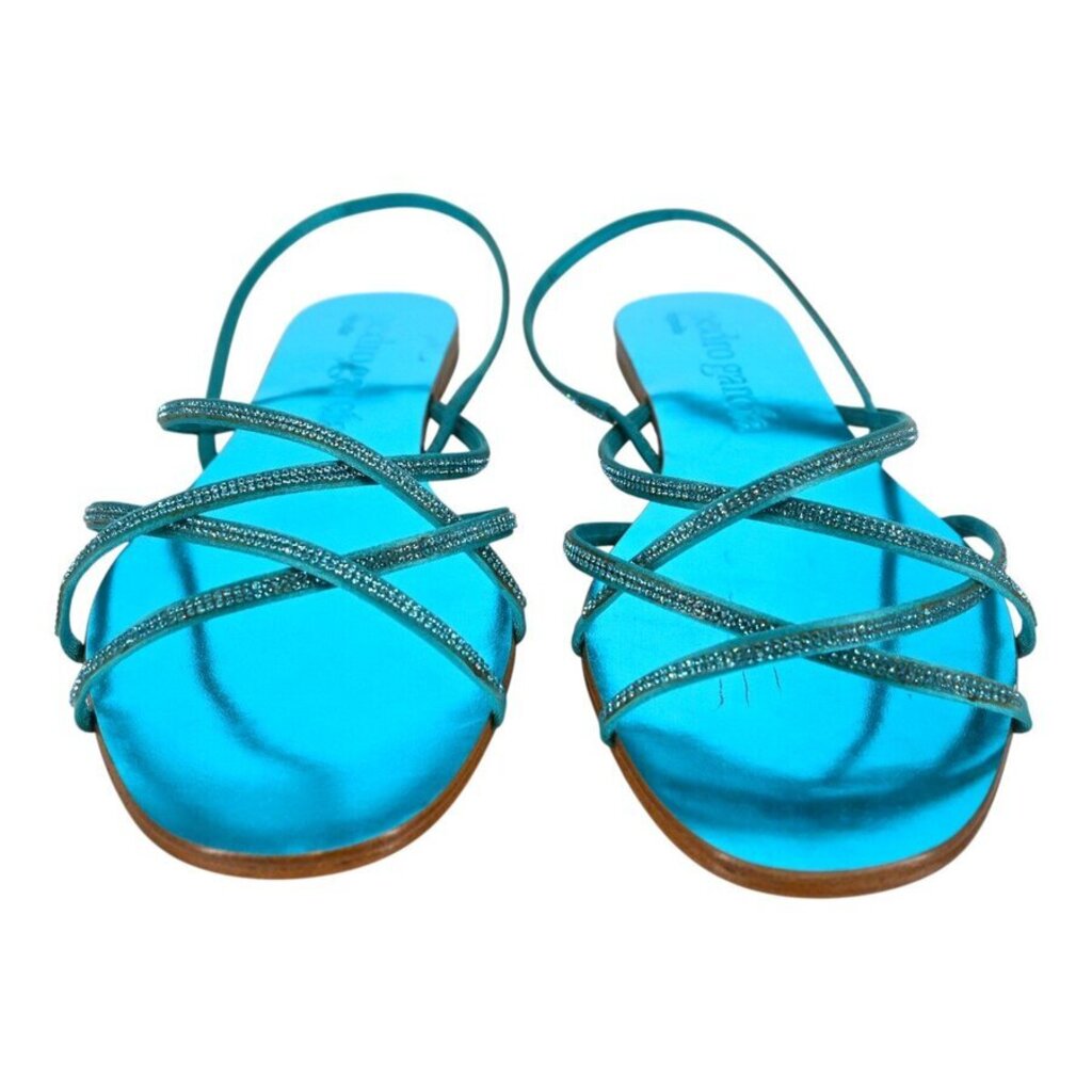 PEDRO GARCIA | Metallic Leather Rhinestone Slingback Sandals Size 40