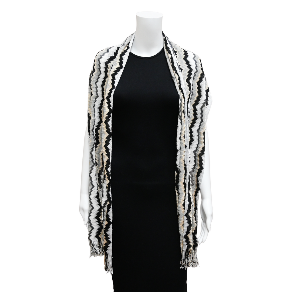 MISSONI | Multicolored Chevron Knit Fringe Scarf